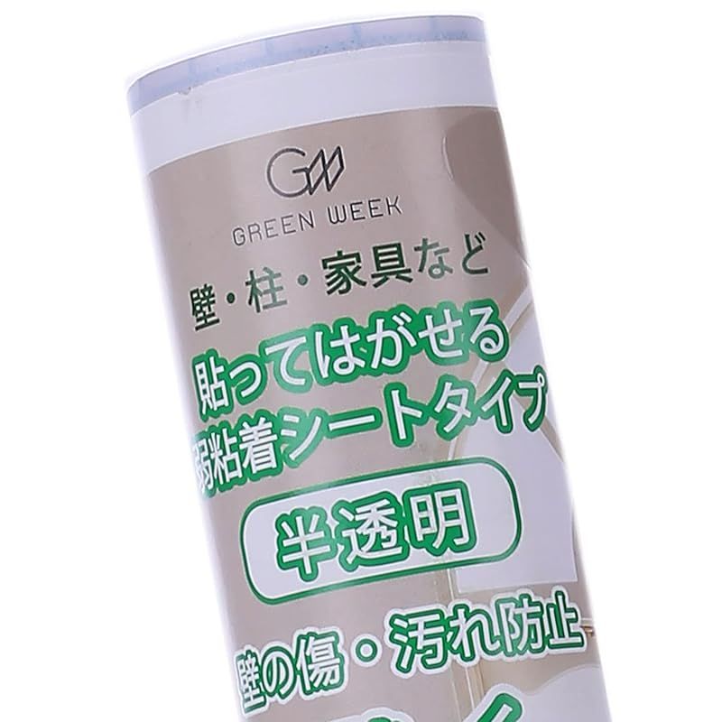 商品名:グリーンウィーク ペット壁紙保護シート 44cm×5m (はがせる粘着タイプ 弱) 半透明 壁の傷、汚れ、ペットしつけ、猫ひっかき防止
