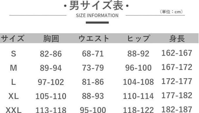 サイズ:S、M、L、XL、2XL(詳細なサイズ情報はサイズチャートをご参照ください。)