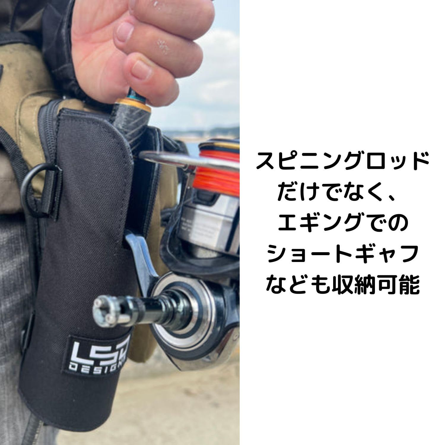 シリーズ名:【ロッドホルダーフィットSP】……エギングでのショートギャフ・スピニングロッド1本をがっちり固定できるシングルタイプのロッドホルダーSP (スピニングロッド専用設計)。LSDバッグにジャストフィットする専用設計で、移動中でもロッドをしっかり固定。幅広い釣法対応した便利なロッドホルダー!