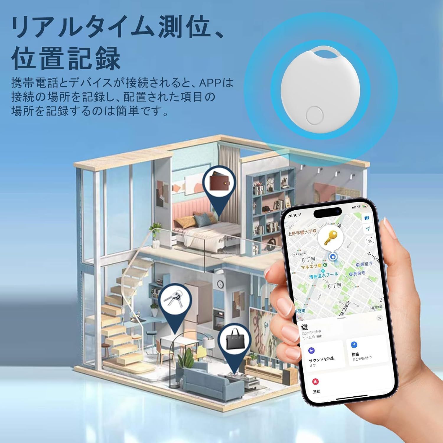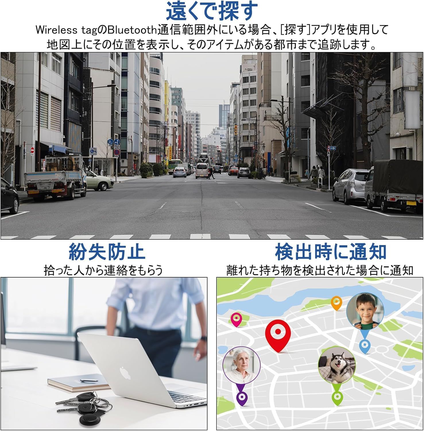 特徴 リアルタイムトラッキング、音鳴らし、防水防塵、長寿命