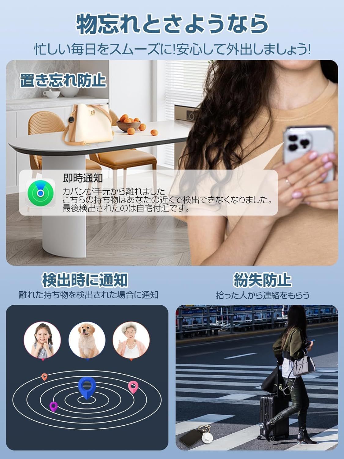 【高齢者や子供の見守りに適用!】:高精度なGPS機能で家族やデバイスの位置をリアルタイムで追跡して、子供や高齢者の見守りに最適で、安心感を提供します。防犯、迷子やアウトドアなど様々なシーンで活躍する多機能スマートタグです。