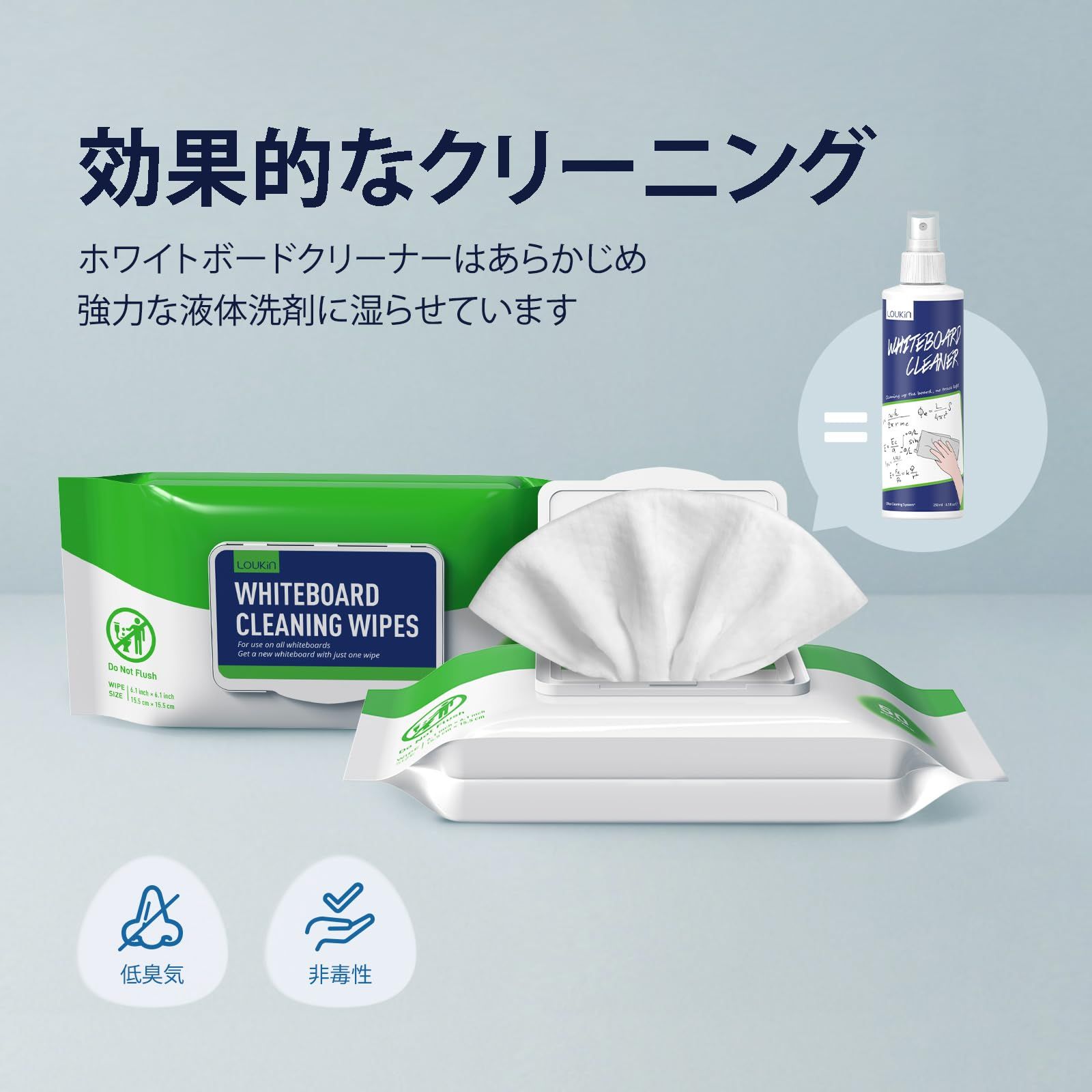 LOUKIN ホワイトボードクリーナー ドライ消去ワイプ ホワイトボード用 おしぼり 非毒性 クリーニングワイプ シートタイプ 持ち運び便利クリーナー 50枚入り (3パック)