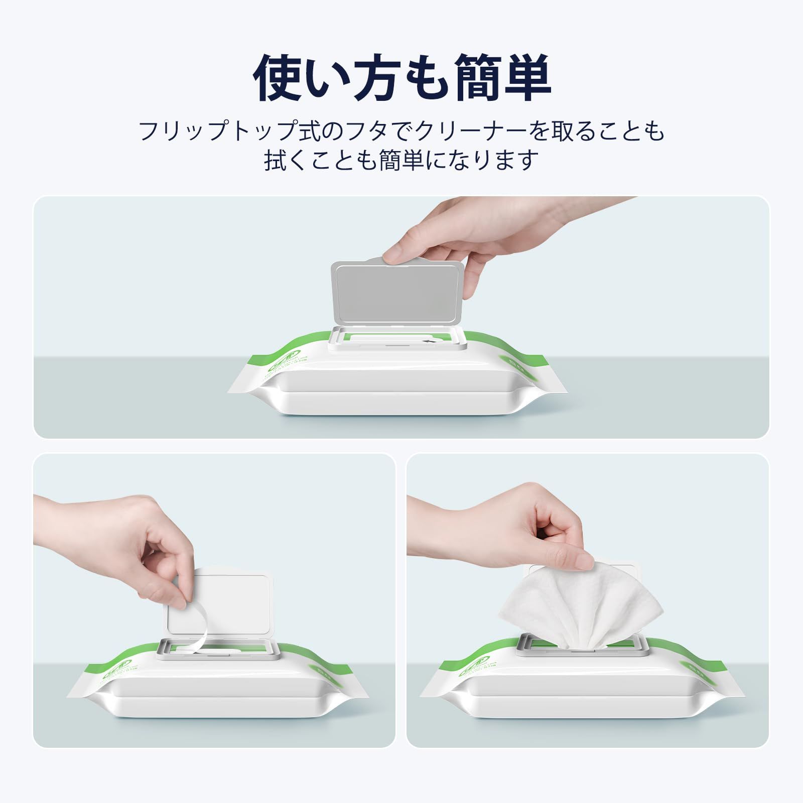 密閉型デザイン:パッケージには密閉型デザインを取り入れ、フリップトップ式の蓋とシールの組み合わせで、防塵、保湿性に優れ、ワイプの乾燥を効果的に防げます。