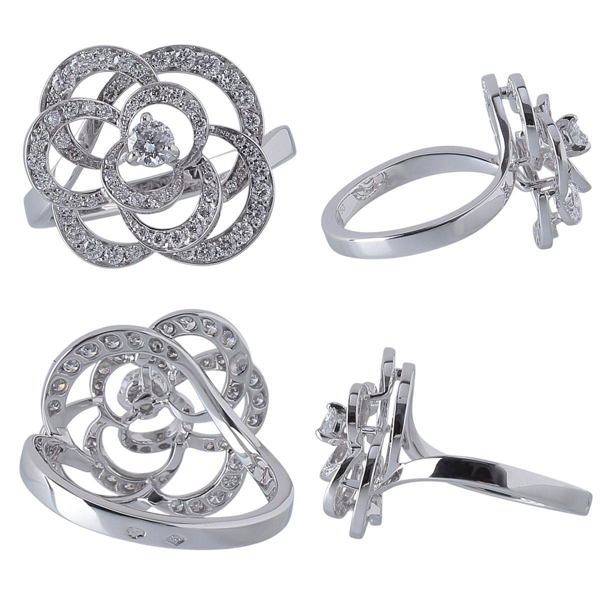 【商品状態】シャネルのカメリアリングです。新品仕上げ済のためとても綺麗な状態ですが、取り切れない細かいキズはご了承ください。