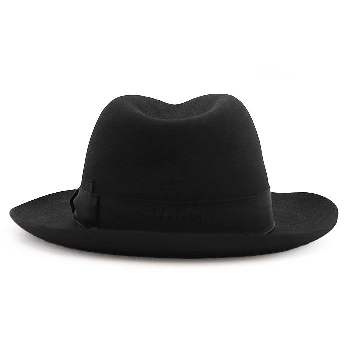 【シリーズ】Borsalino ボルサリーノ フェルトハット ラビットファー リボン 中折れ帽 メンズ レディース ユニセックス 57 黒 イタリア製