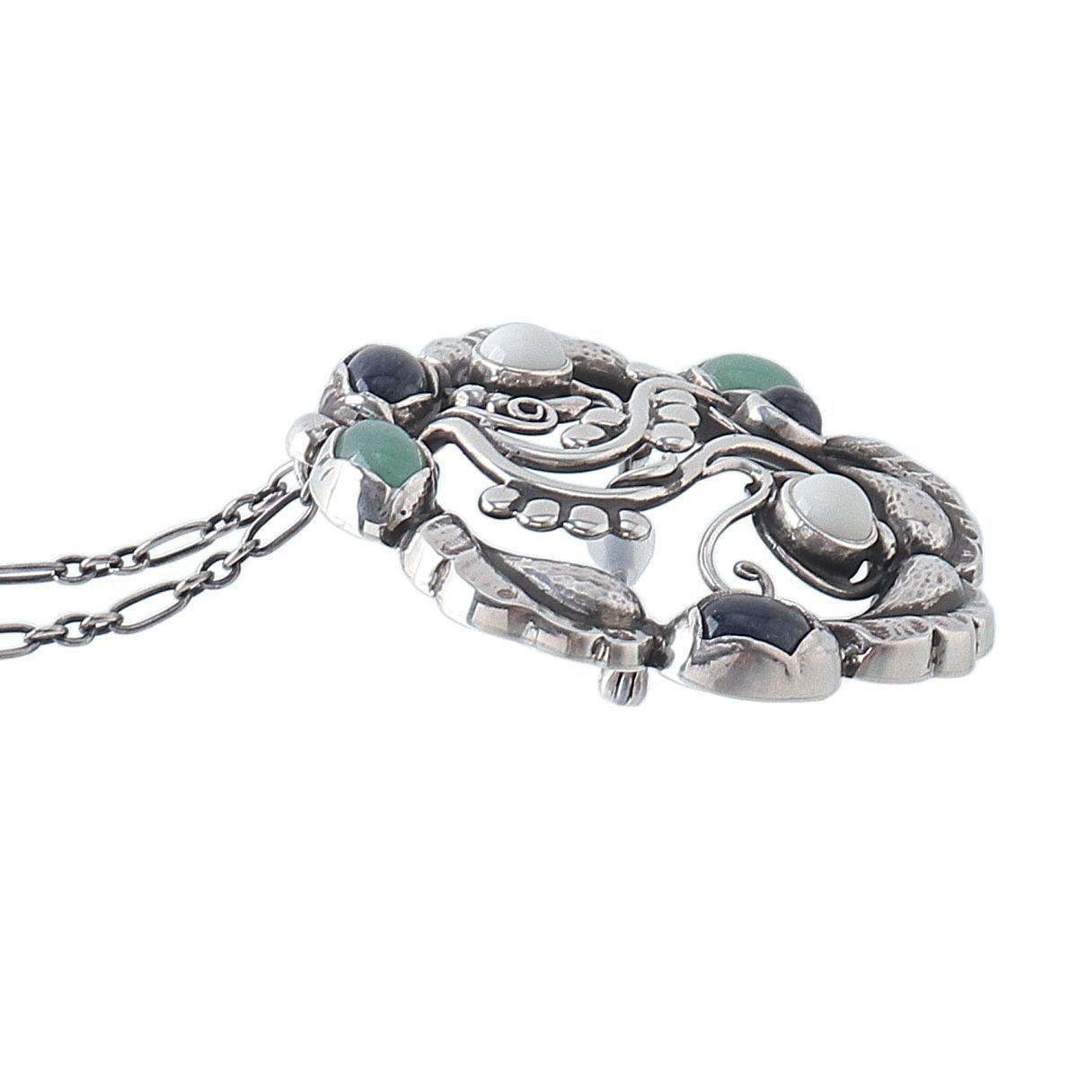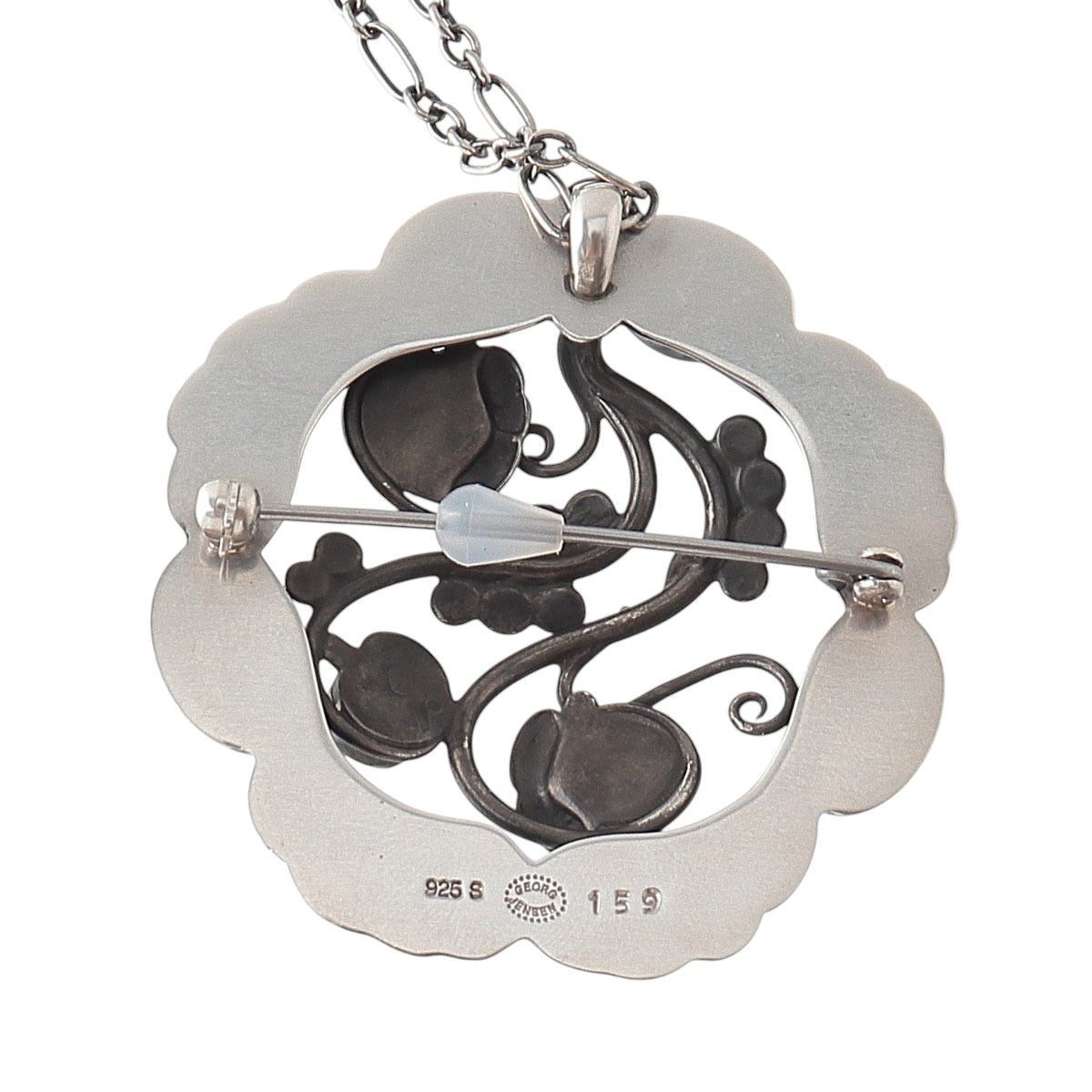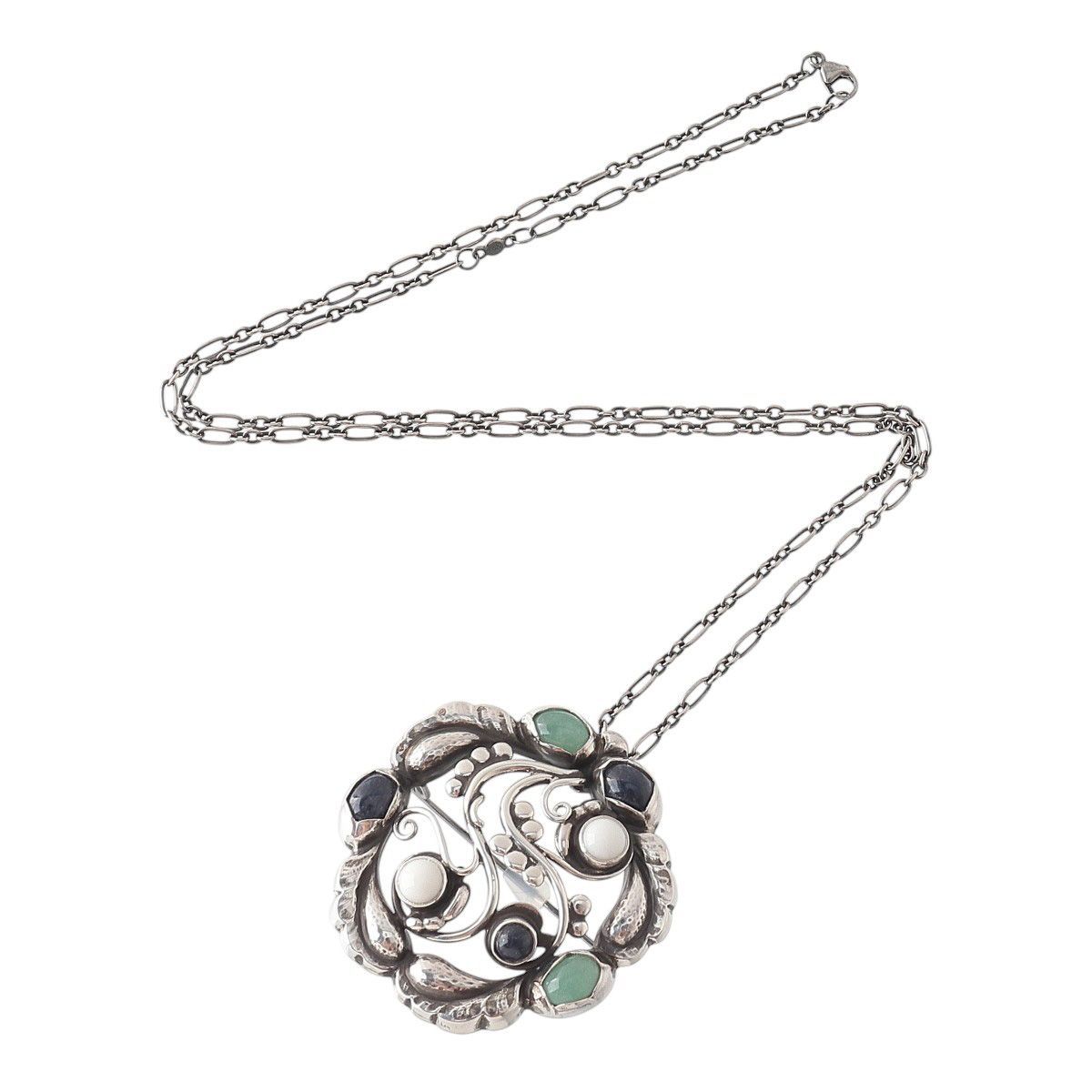 【商品状態】ジョージジェンセンの#159のネックレスです。ペンダントはブローチ兼用になります。色石はアメジストとガーネットかと思われます。シルバー特有の黒ずみと細かいキズ、カラーストーンにわずかなカケがありますが、比較的綺麗な状態です。
