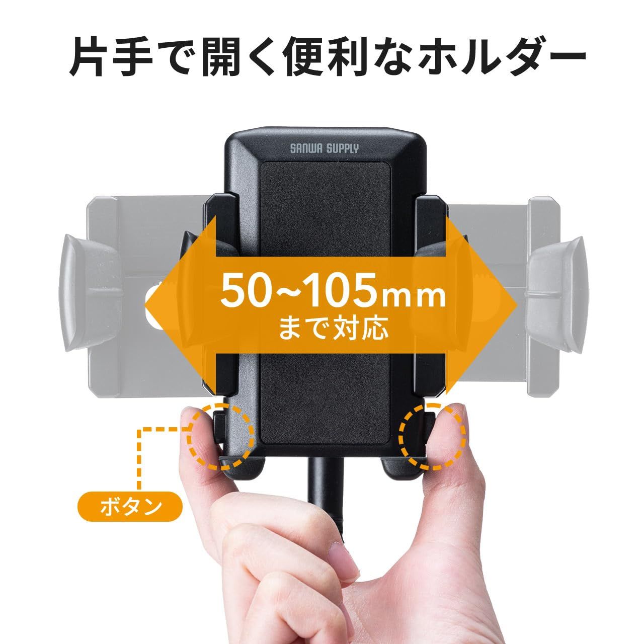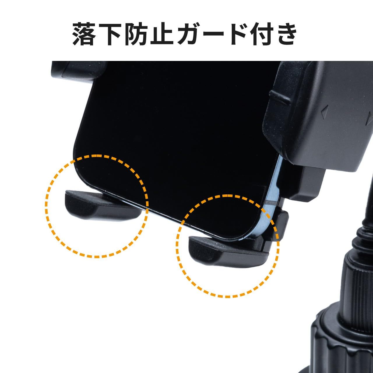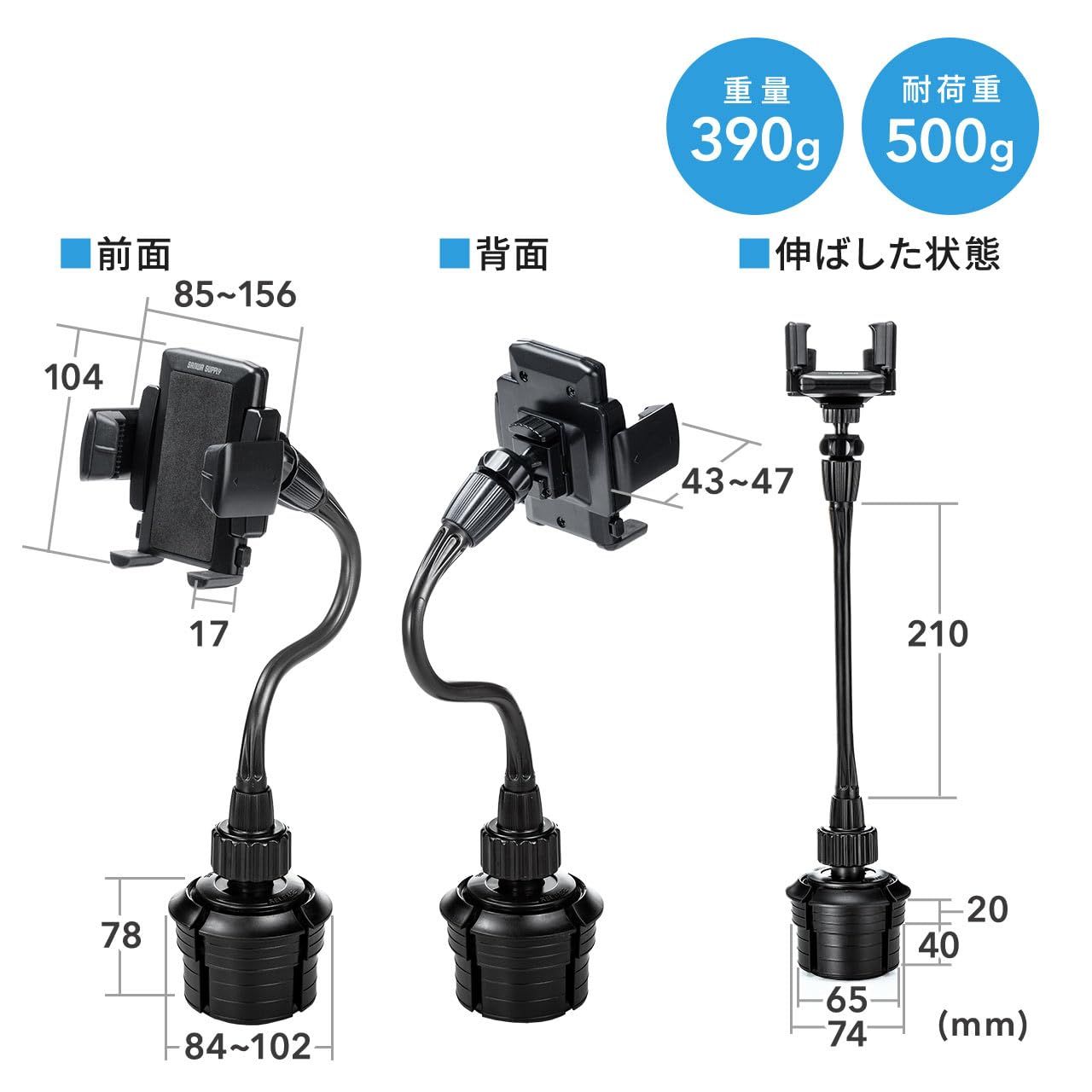 サンワダイレクト ドリンクホルダー スマホスタンド 車 アーム長21cm 幅5~10.5cmのスマホ対応 200-CAR055