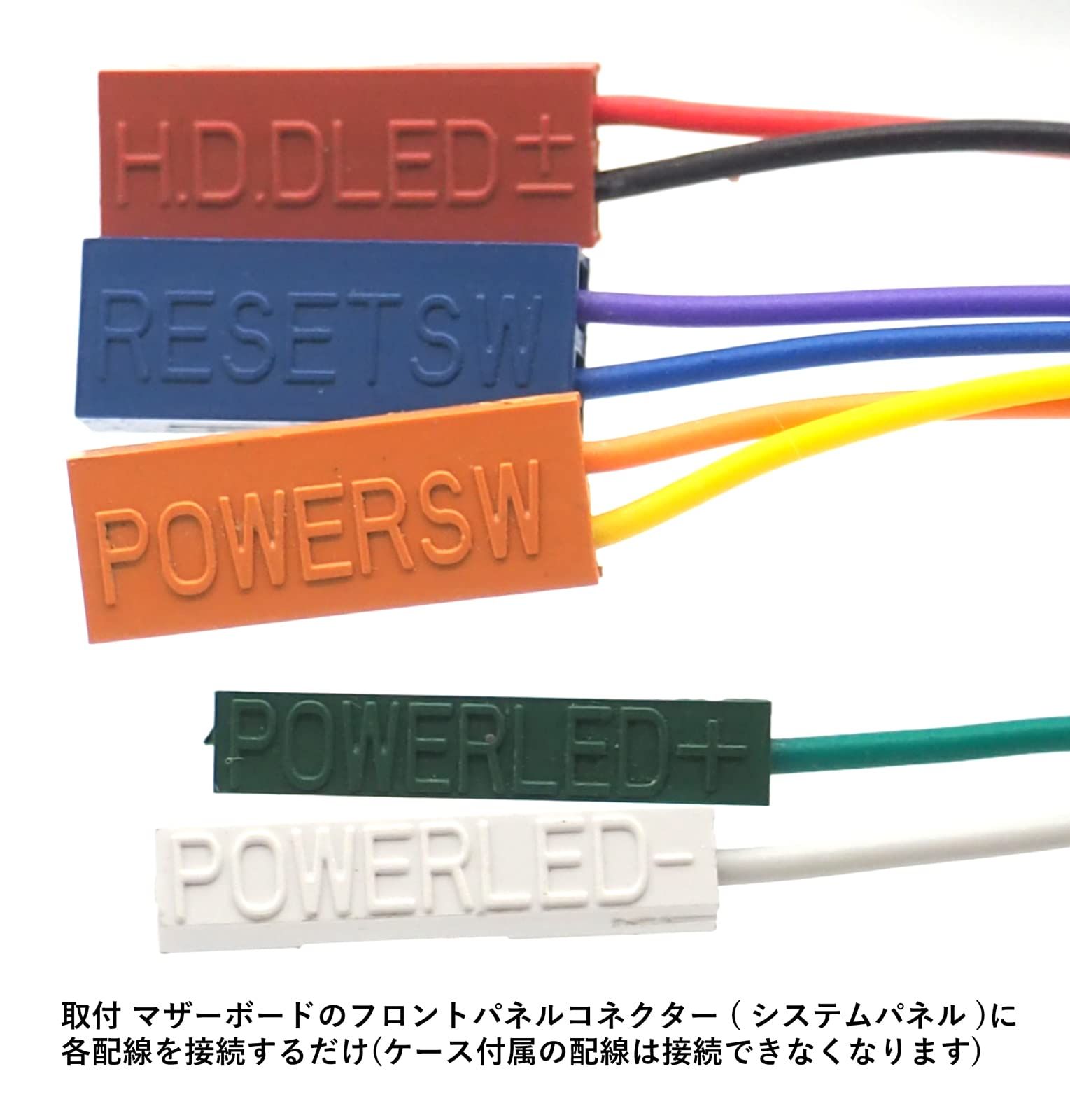 取付 マザーボードのフロントパネルコネクター ( システムパネル )に各配線を接続するだけ(ケース付属の配線は接続できなくなります)