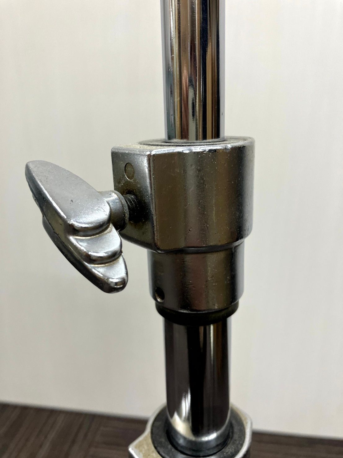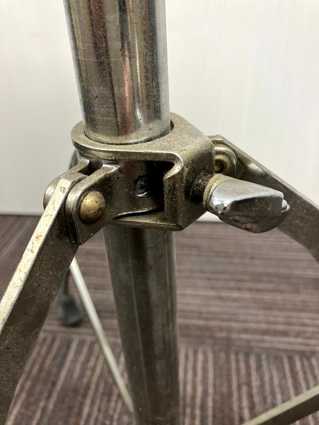 金属部分にくすみや細かな傷、ゴム足に摩耗がありますが、固定機構は動作良好です。