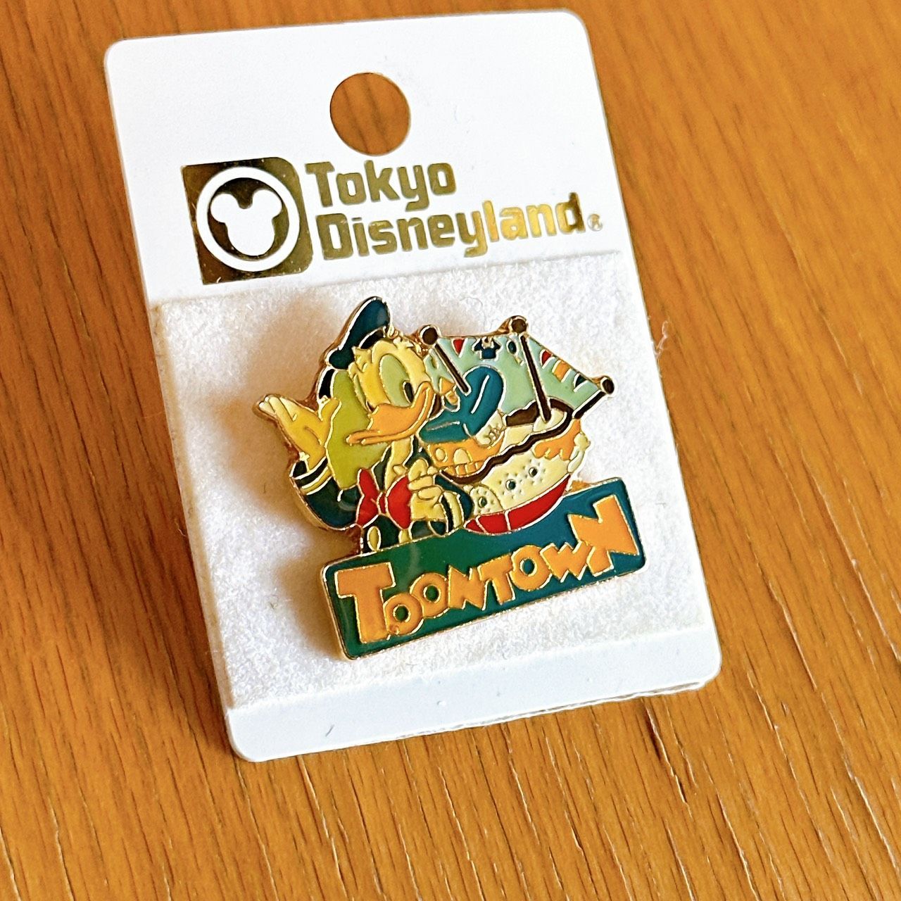 TOONTOWN ドナルドとミス・デイジー号のピンバッジ(台紙付き)です。