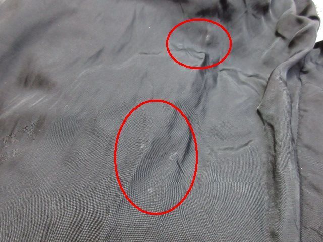 裏地の一部に小さな汚れがある箇所があります。また、大きく目立ちはしませんが、襟部分に擦れによるステッチの毛羽立ち、引きツレがある箇所がございます。(最終画像をご確認ください)