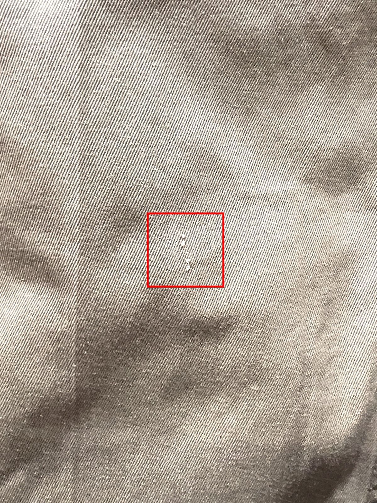 左バックポケット下辺りにシミと、わずかなキズぐらいで、その他は特に目立ったダメージや汚れはありません。