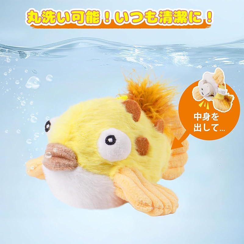 【取り外し&水洗いOK!いつでも清潔に】内蔵の振動モーターは簡単に取り外し可能。外側のハリセンボンぬいぐるみ部分は丸洗いOKで、よだれや汚れが気になっても清潔を保てます。噛むおもちゃとしても安心。