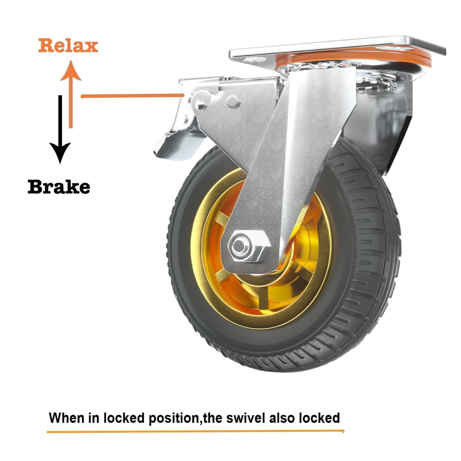 静音キャスター 5インチ 4個セット 車輪径125mm、耐荷重330kg、360°回転、ブレーキ付き、ストッパー付き、屋内外用、ネジ付き、交換用、車輪径125mm