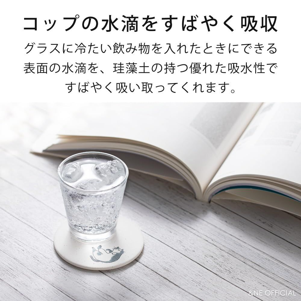珪藻土の持つ優れた吸水性で、グラス表面にできる水滴をすばやく吸い取ってくれるので、コースターと張り付いてしまう事もありません。