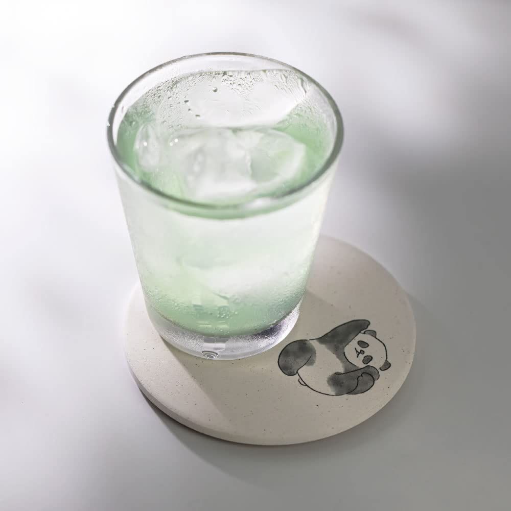 アンドエヌイー(&NE) 陶器珪藻土コースター panda ごろごろ ホワイト 1枚入 直径9.7cm×厚さ0.6cm 吸水コースター 日本製 美濃焼 珪藻土 アスベスト不使用 吸水 速乾 コルク付き 滑りにくい 丸型 大きめ おしゃれ 可愛い パンダ NRS-289-GG