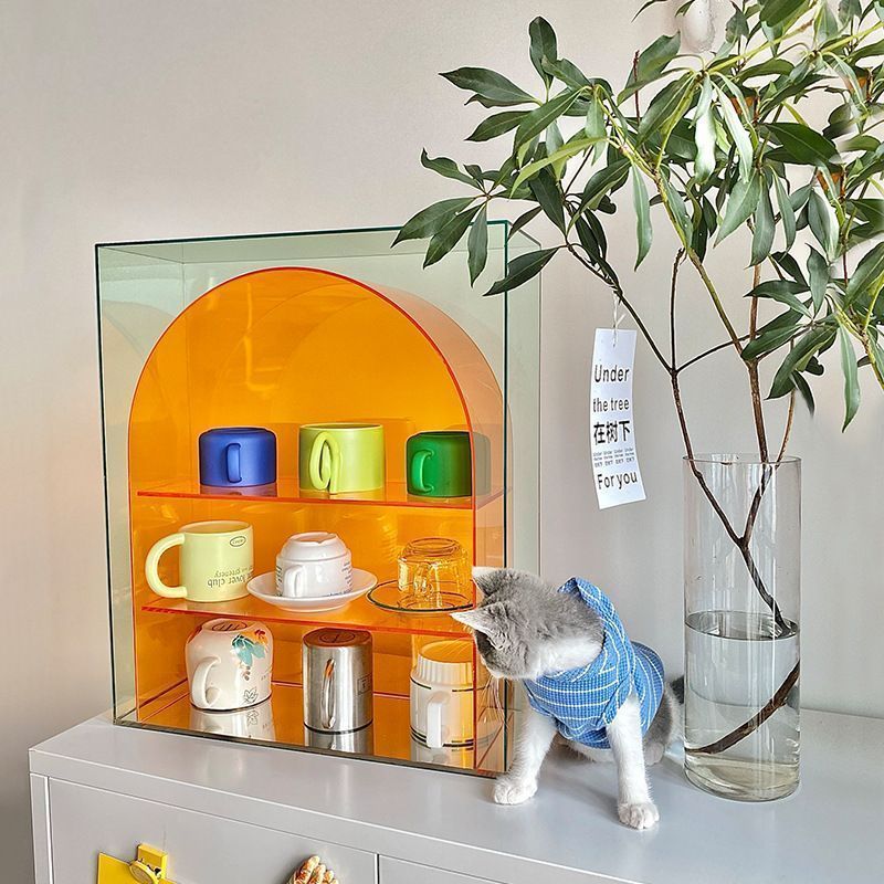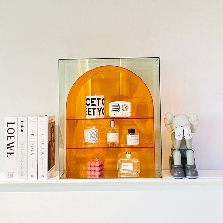ディスプレイ ミニラック アーチ形 多機能 3段 おしゃれ かわいい インテリア 北欧 収納 ケース ロッカー 棚 シェルフ 韓国 オレンジ
