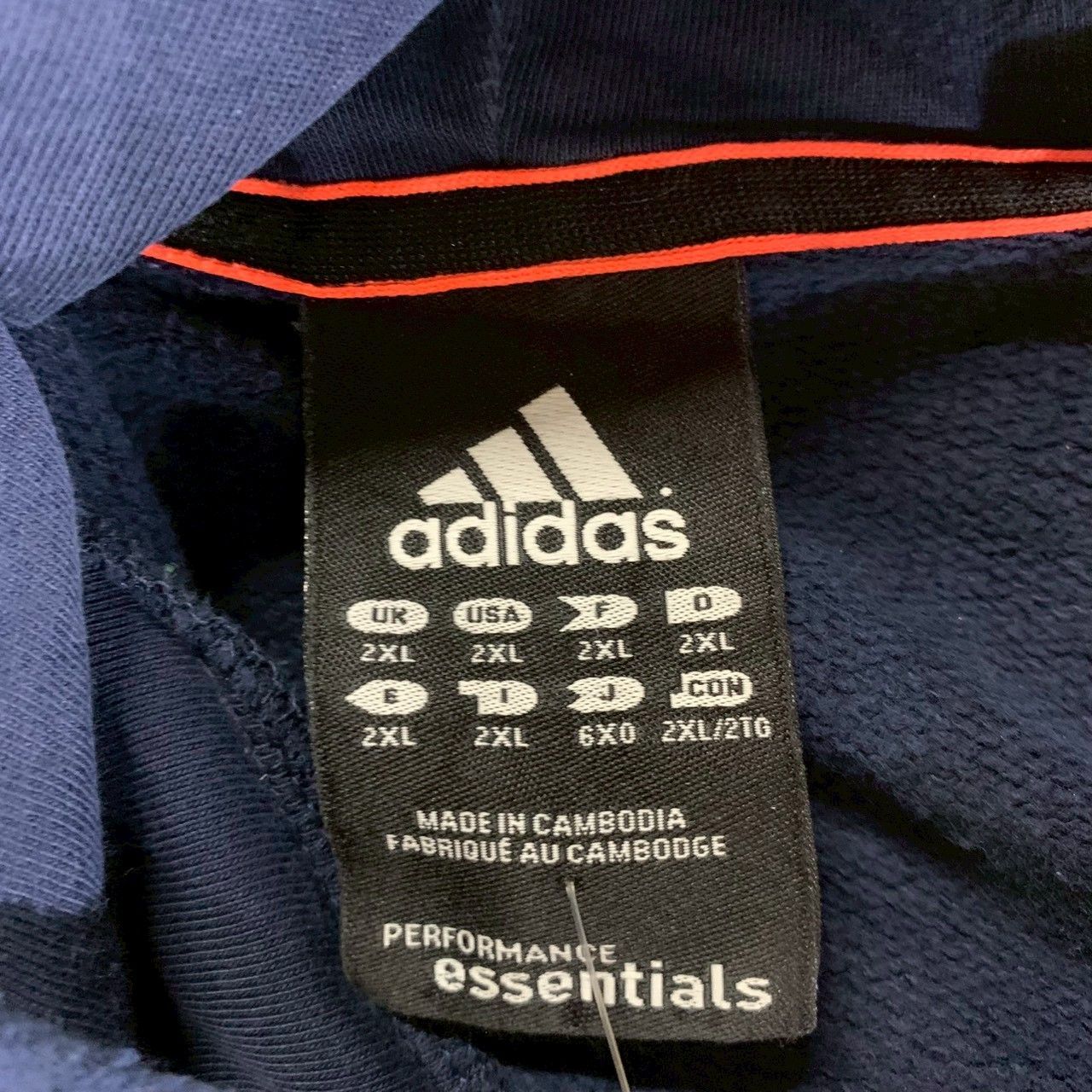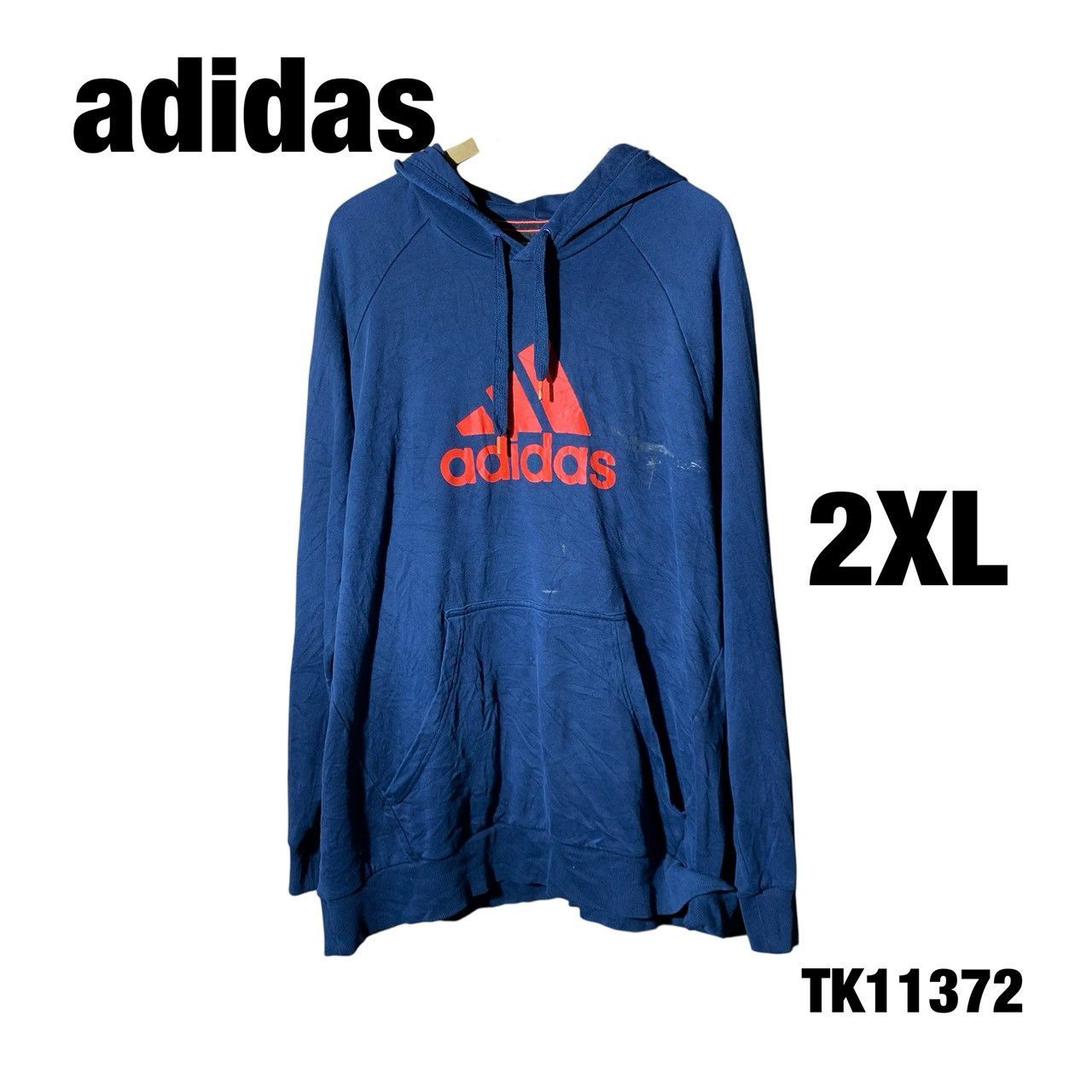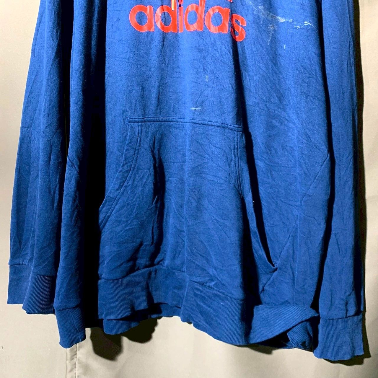 adidas ネイビー 2XL パーカー フーディー プリントロゴ プルオーバー カンガルーポケット 大きいサイズ 古着 TK11372