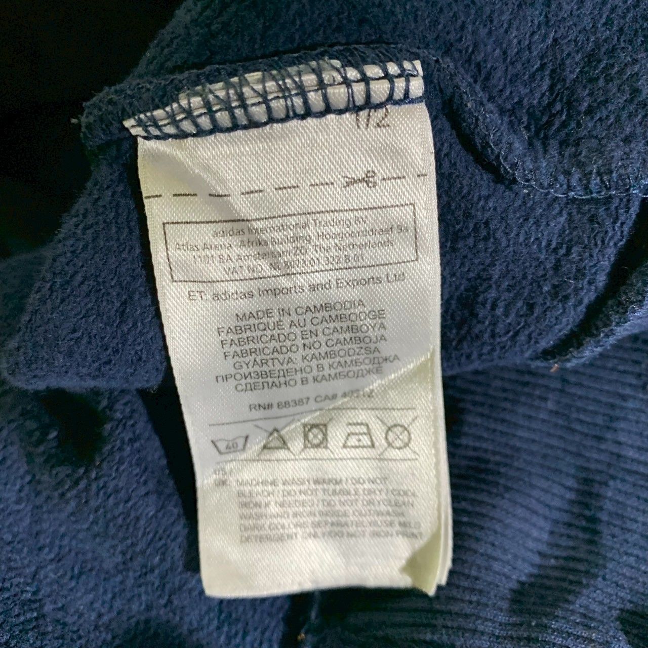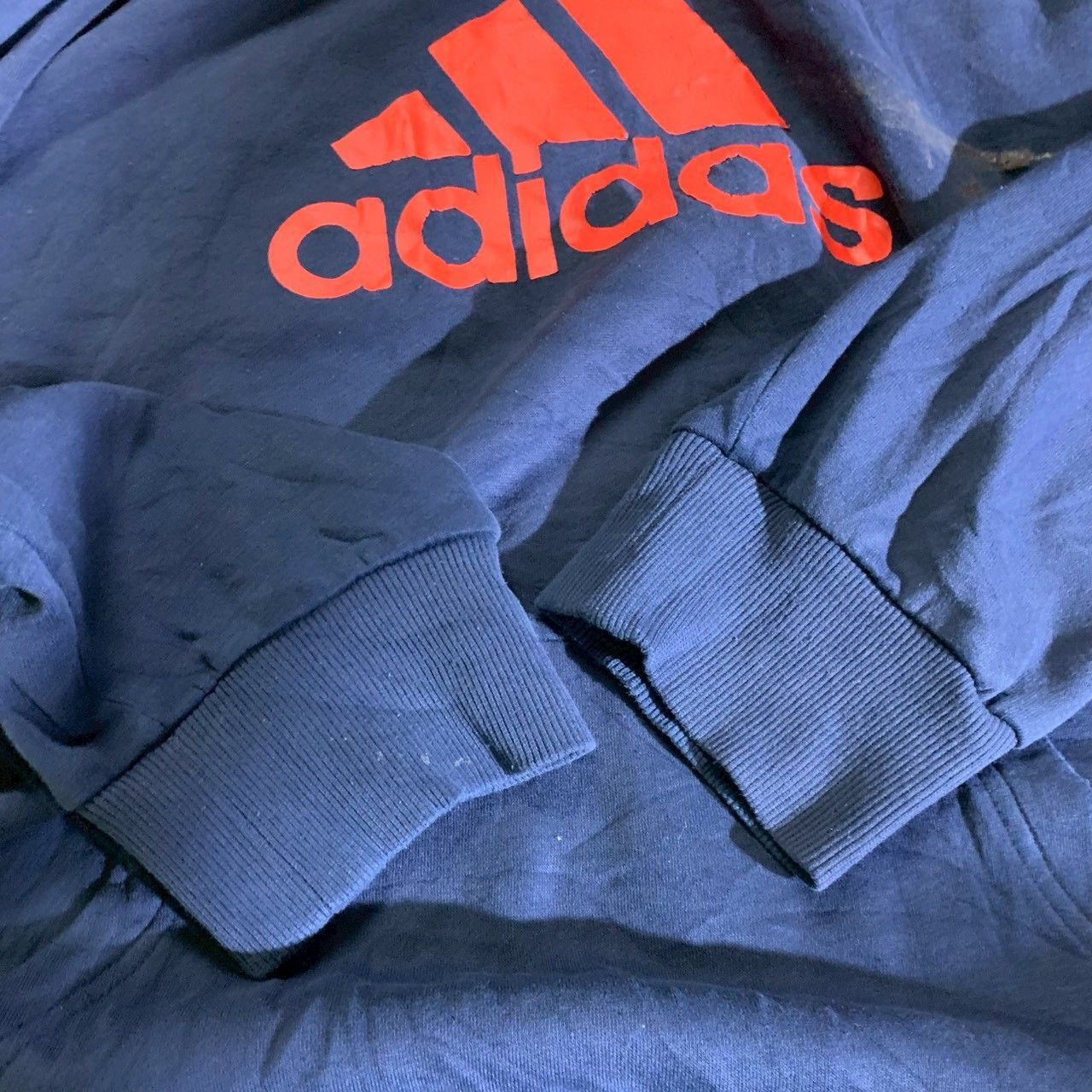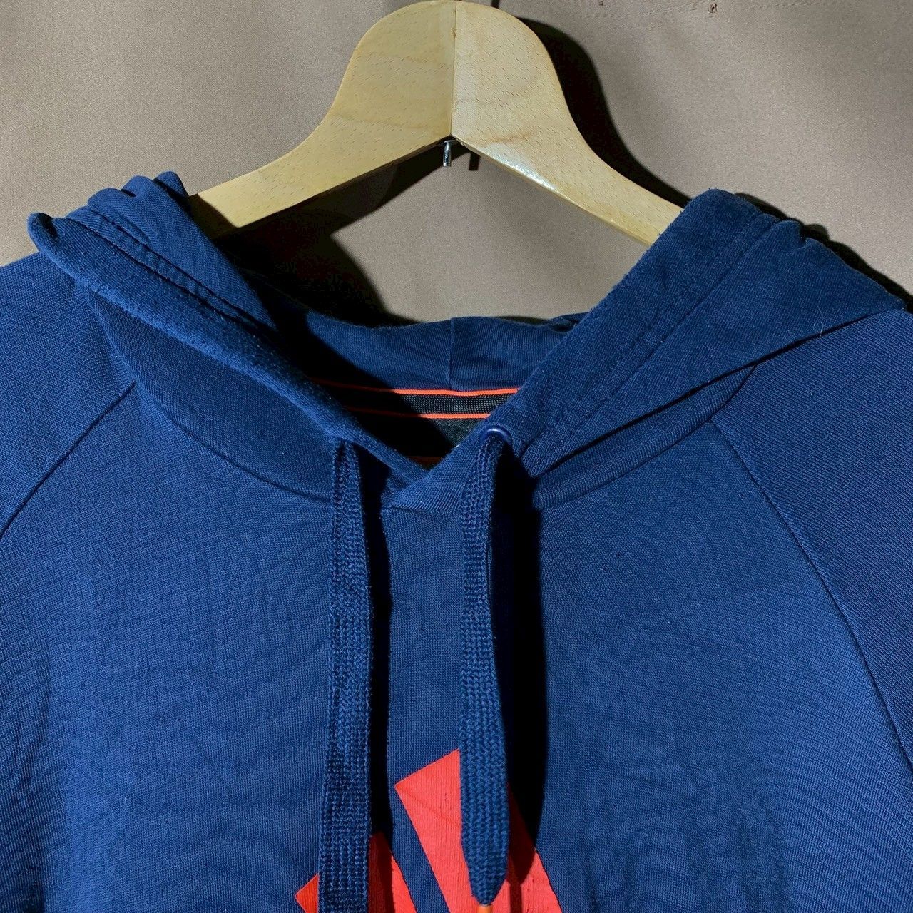 adidas ネイビー 2XL パーカー フーディー プリントロゴ プルオーバー カンガルーポケット 大きいサイズ 古着 TK11372