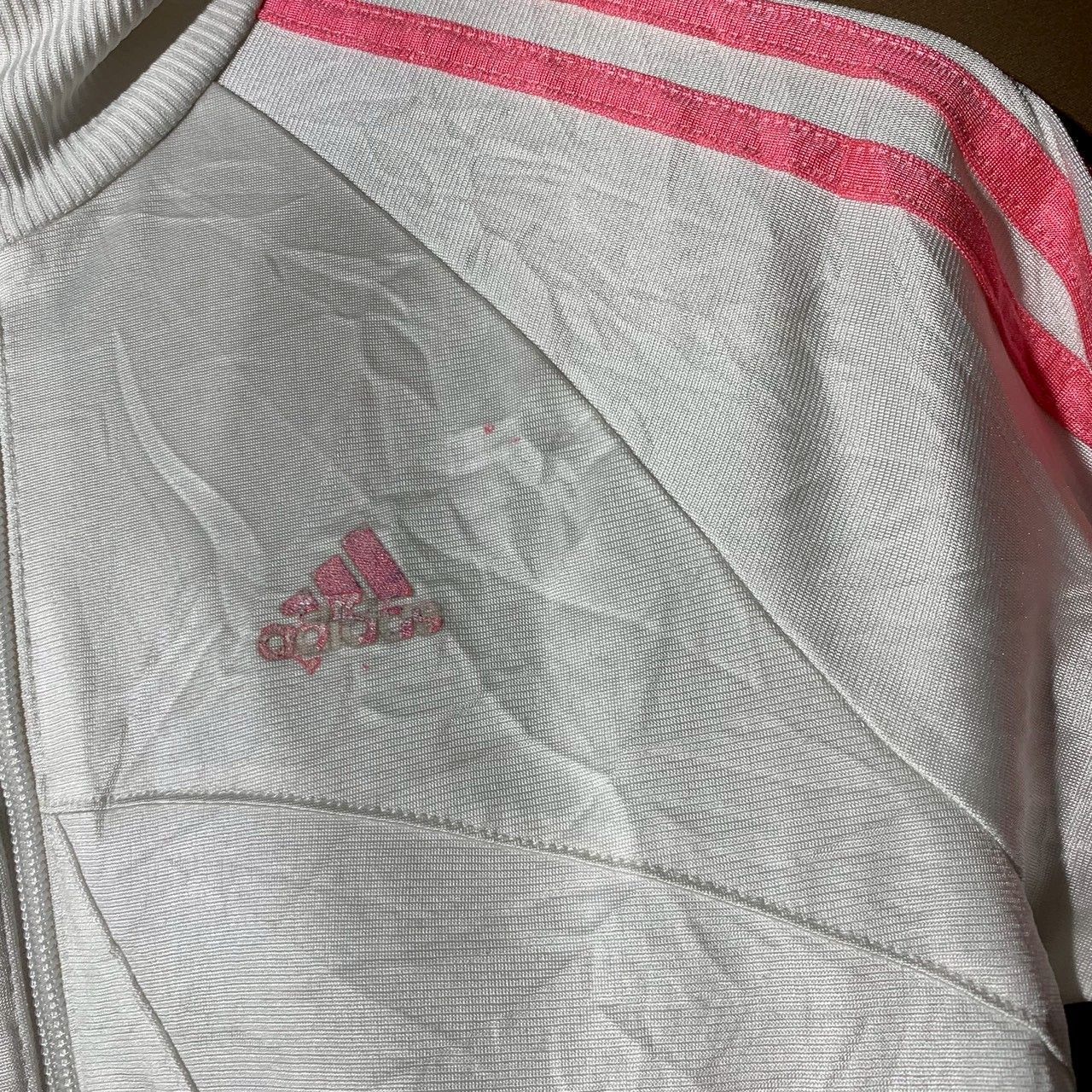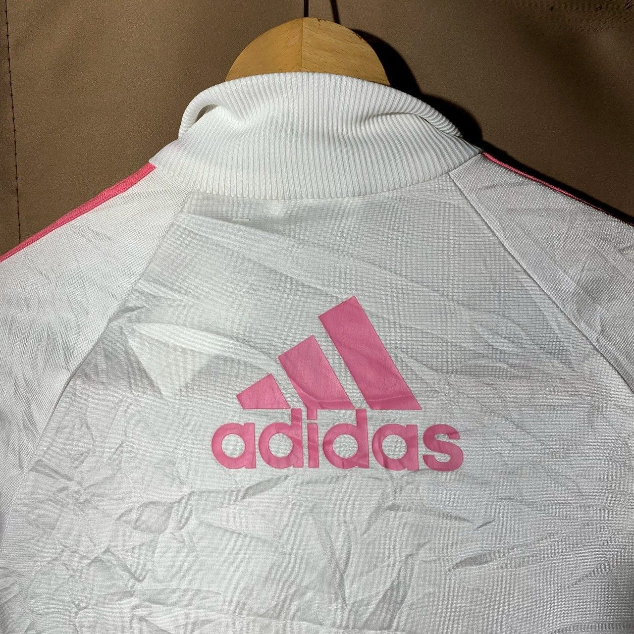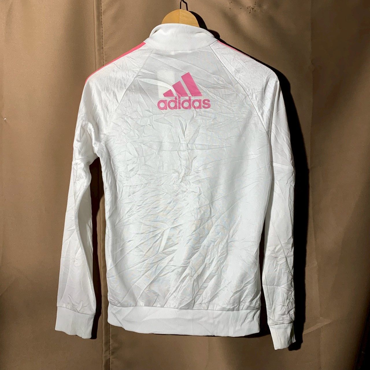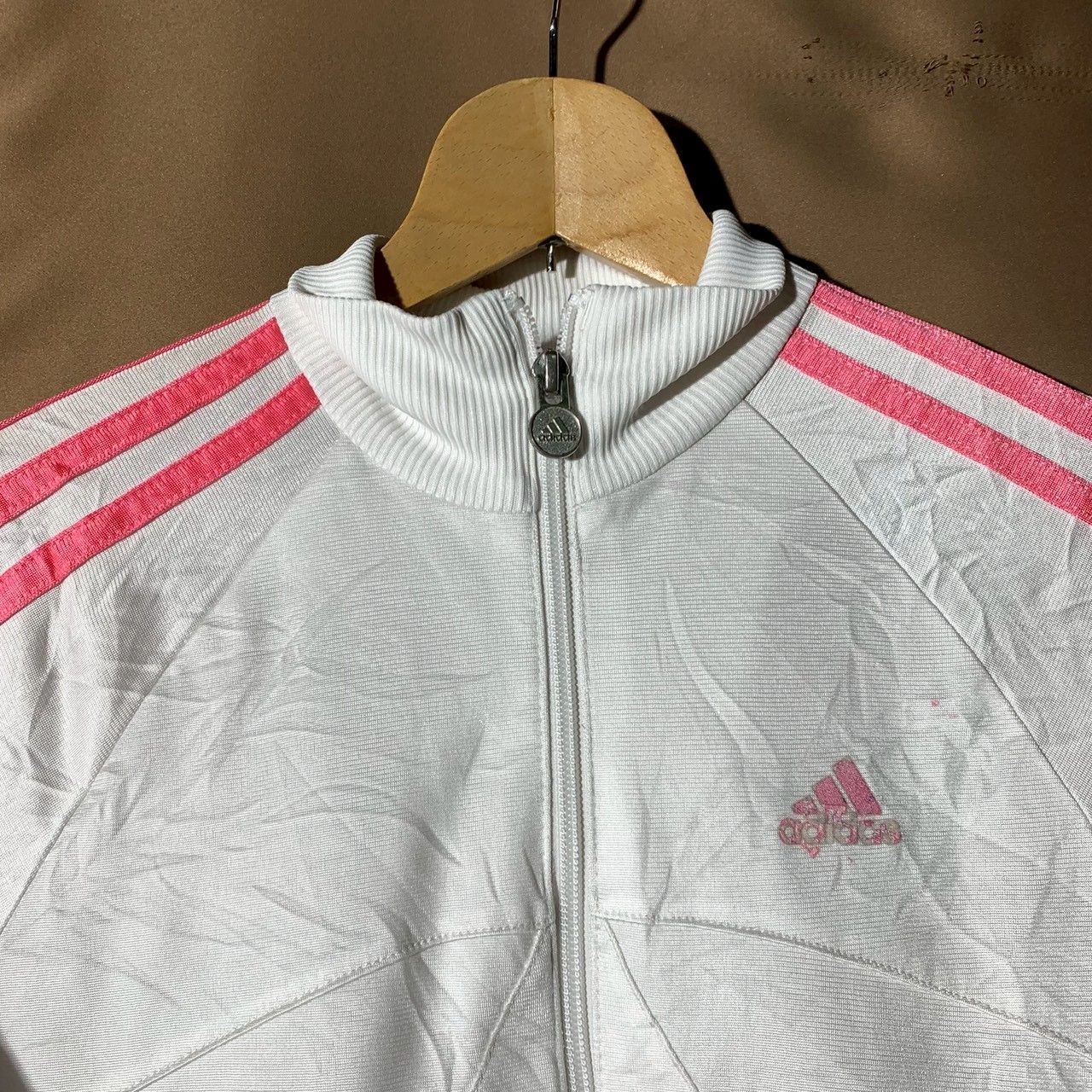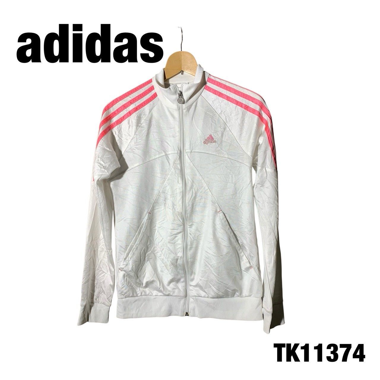 adidas ホワイト トラックジャケット ジャージ レディース ワンポイント フルジップ ポケット 古着 TK11374