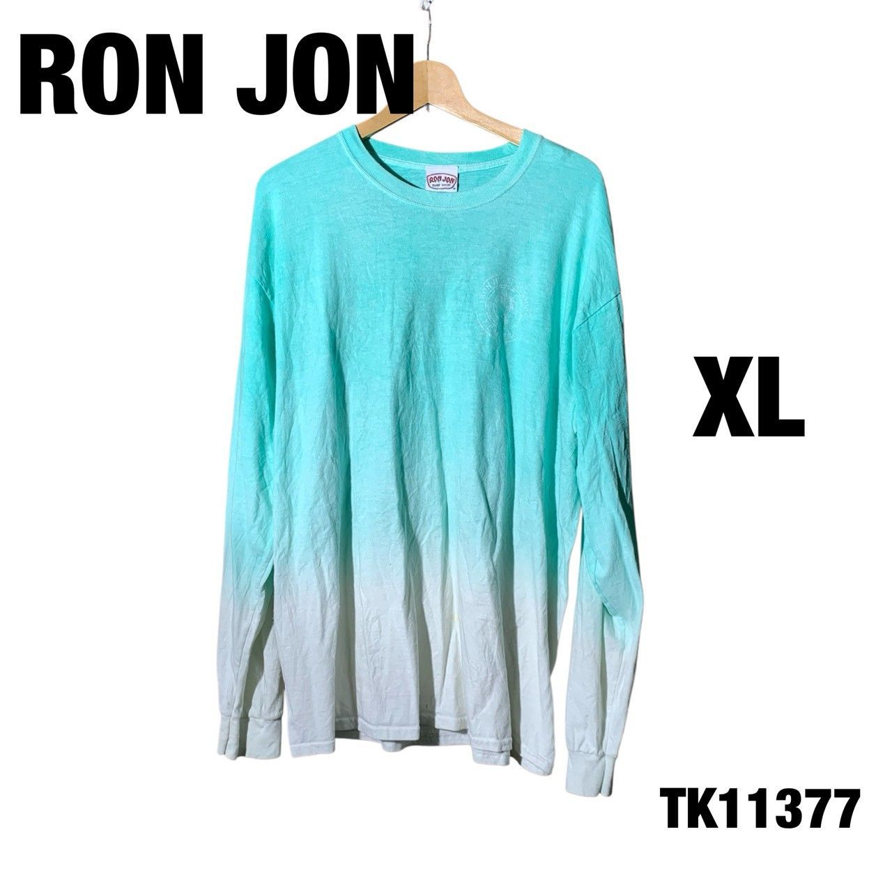 RON JON XL ライトブルー ロンT 長袖Tシャツ グラデーション クルーネック プルオーバー 古着 TK11377