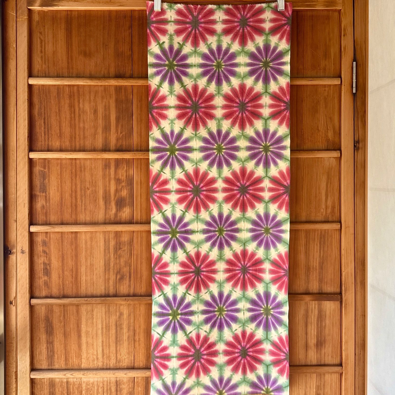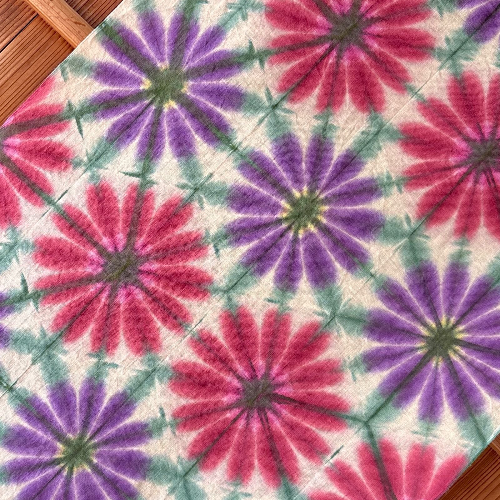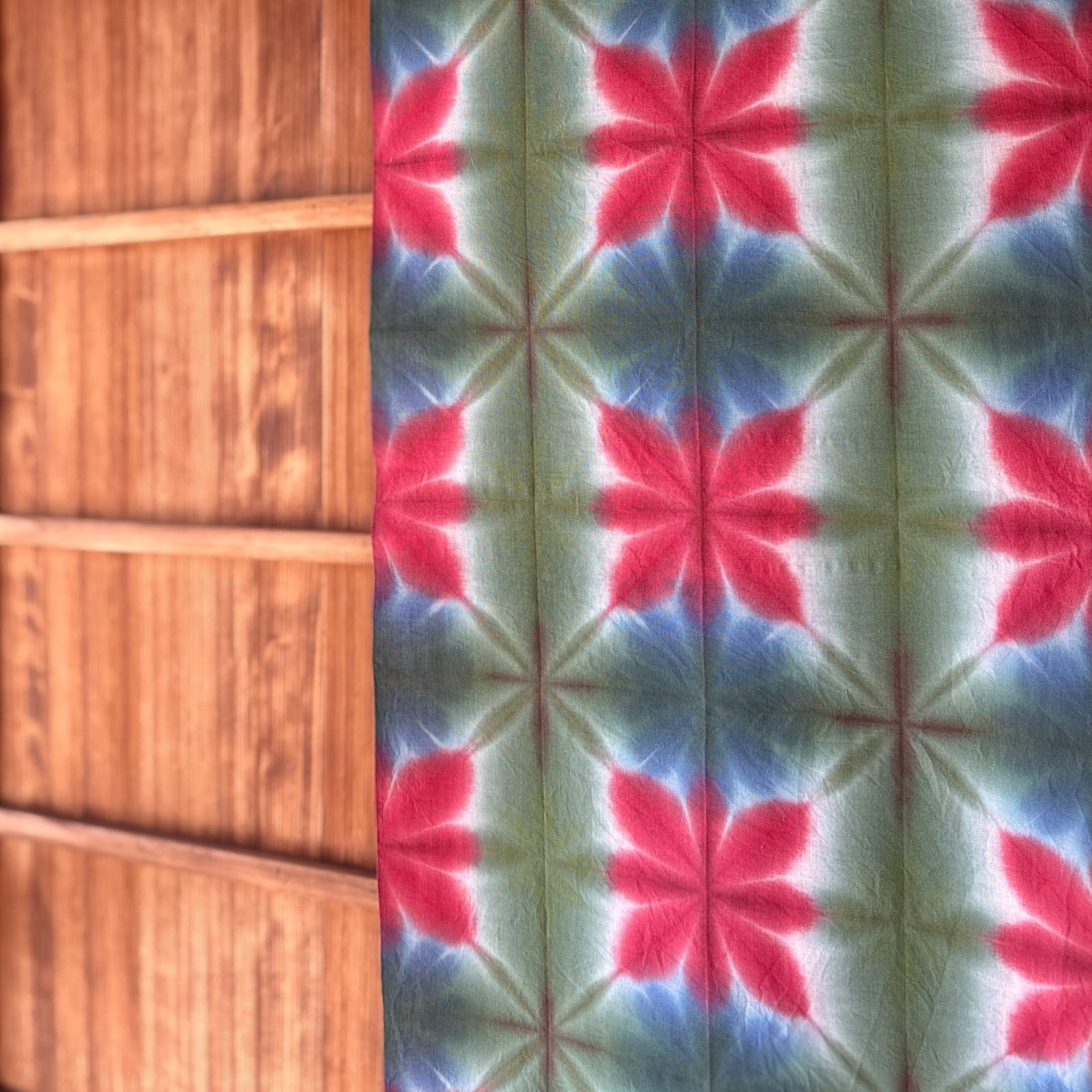 反物木綿 草木染め風 サラシ 手芸材料 板締め絞り 端切れ お祭り はちまき 着物浴衣リメイク 幾何学模様 古典柄 和柄 日本手拭い 昭和レトロ 刺し子 有松鳴海絞り shibori 手作りハンドメイド アンティーク風 花柄 一点物 伝統技法 春夏
