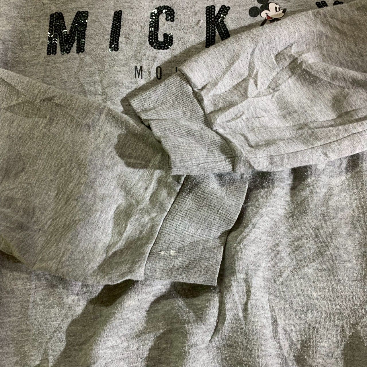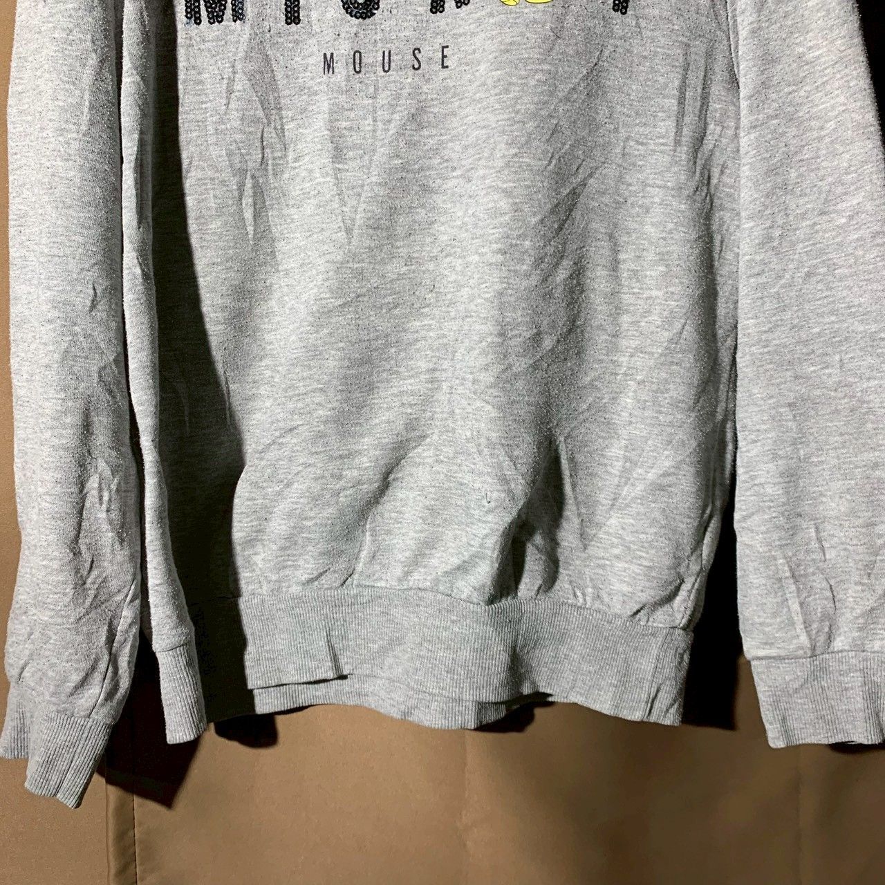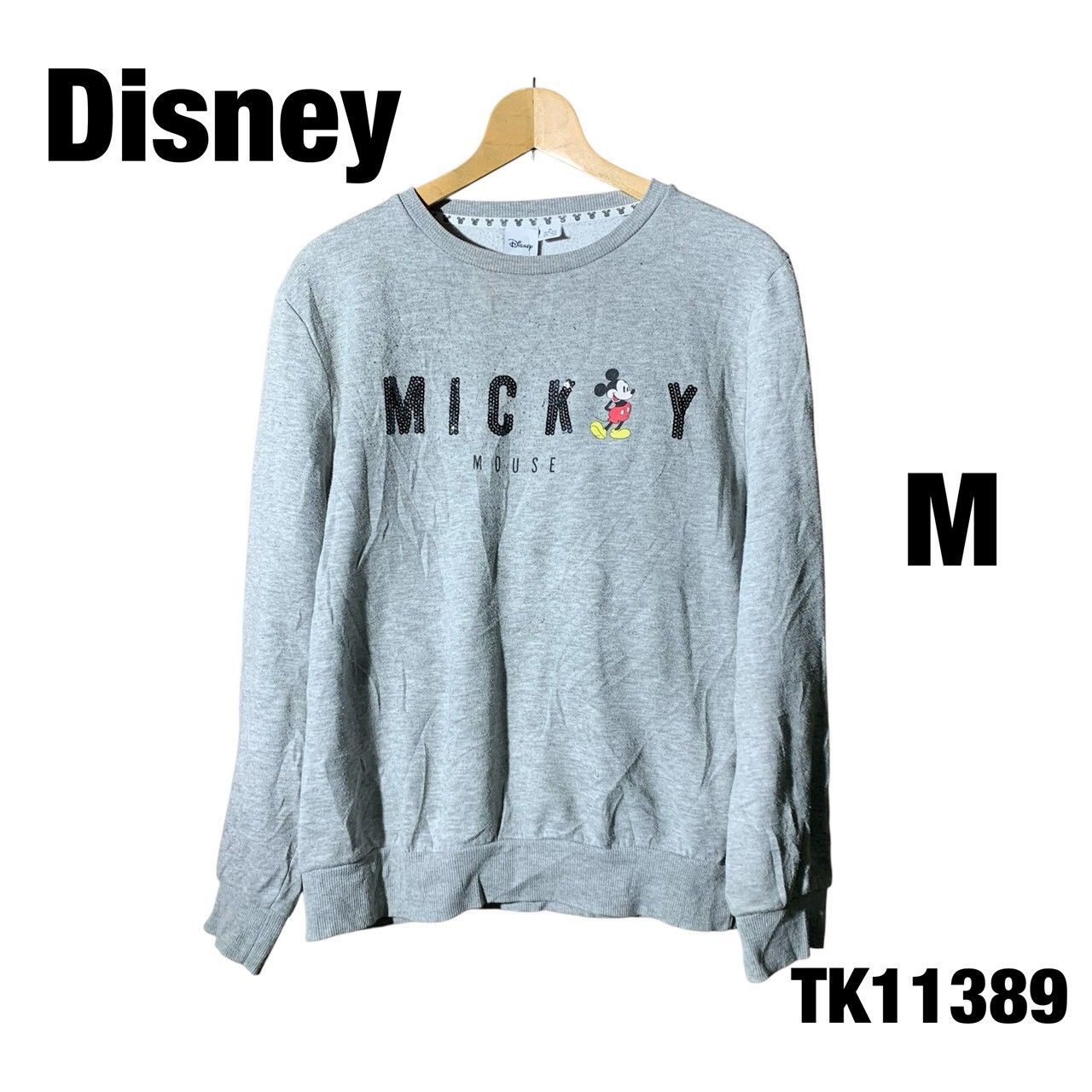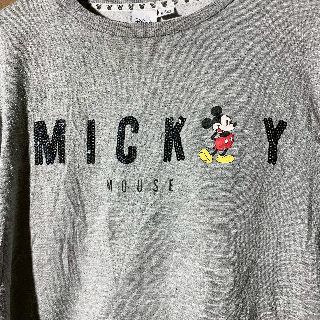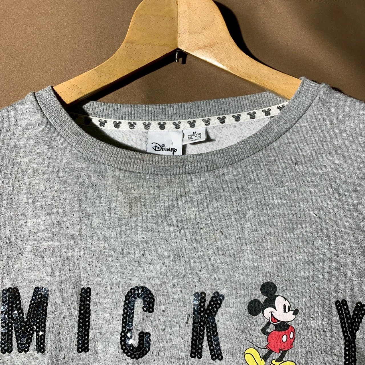 Disney ライトグレー ミッキー スウェット M シンプル スパンコール キャラクター 丸首 トレーナー プルオーバー 古着 TK11389