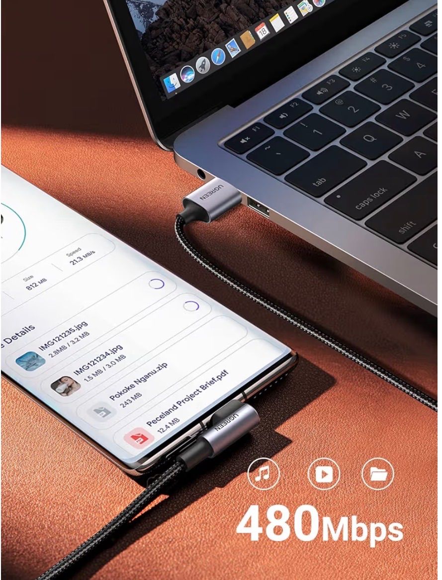 90度の角度をつけた急速充電ケーブルは、Quick Charge 3.0/2.0およびFCP、 AFCと幅広い交換性があります。この充電ケーブルを使用すると、最大3A(5V/3A、9V/2A、12V/1.5A)まで安全かつ安定して出力できし、100分でSamsun S9をフル充電できます。また、最大480Mbpsのデータ転送速度もサポートしています。