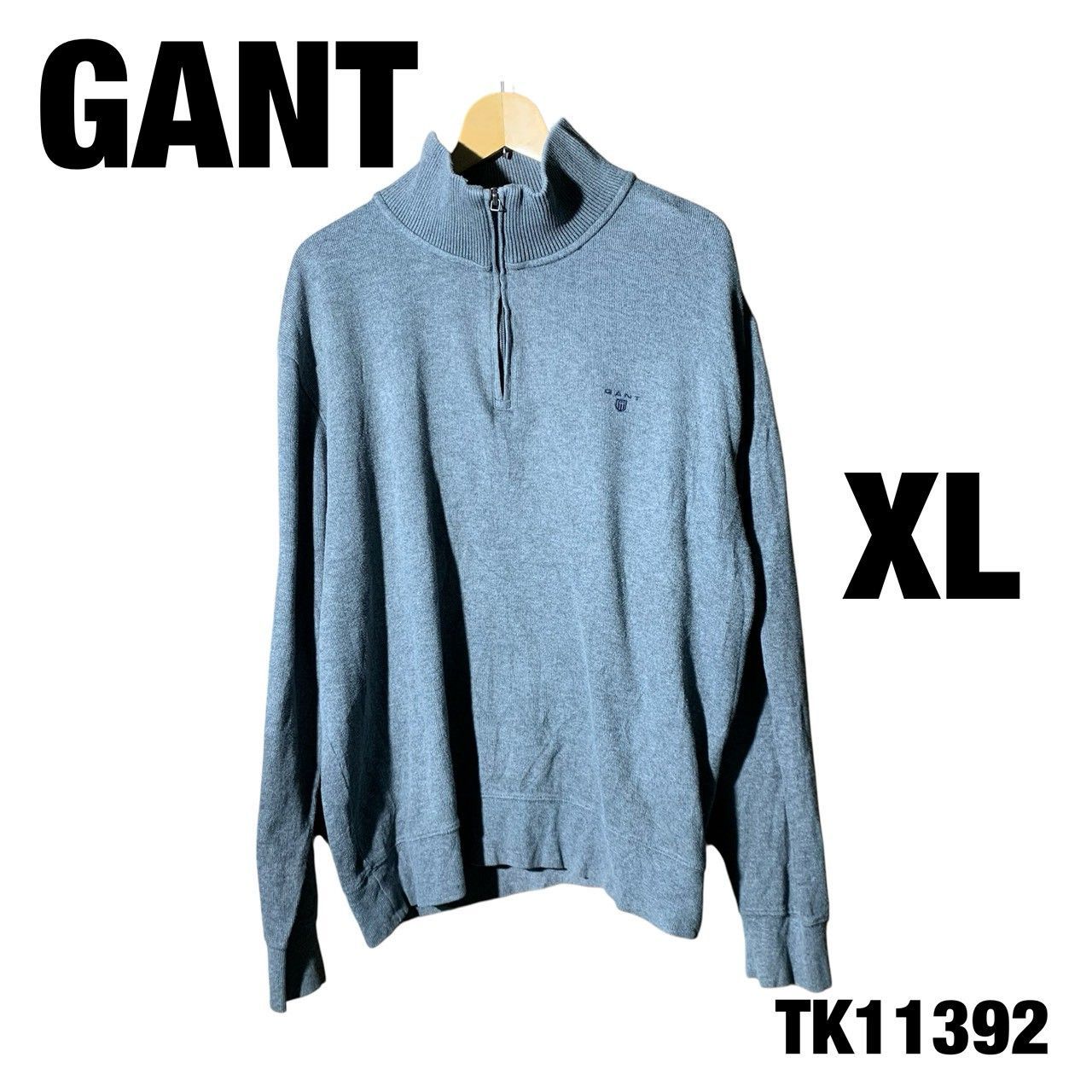 GANT グレー ハーフジップトレーナー XL スウェット ロゴ ワンポイント シンプル プルオーバー 秋冬 古着 TK11392