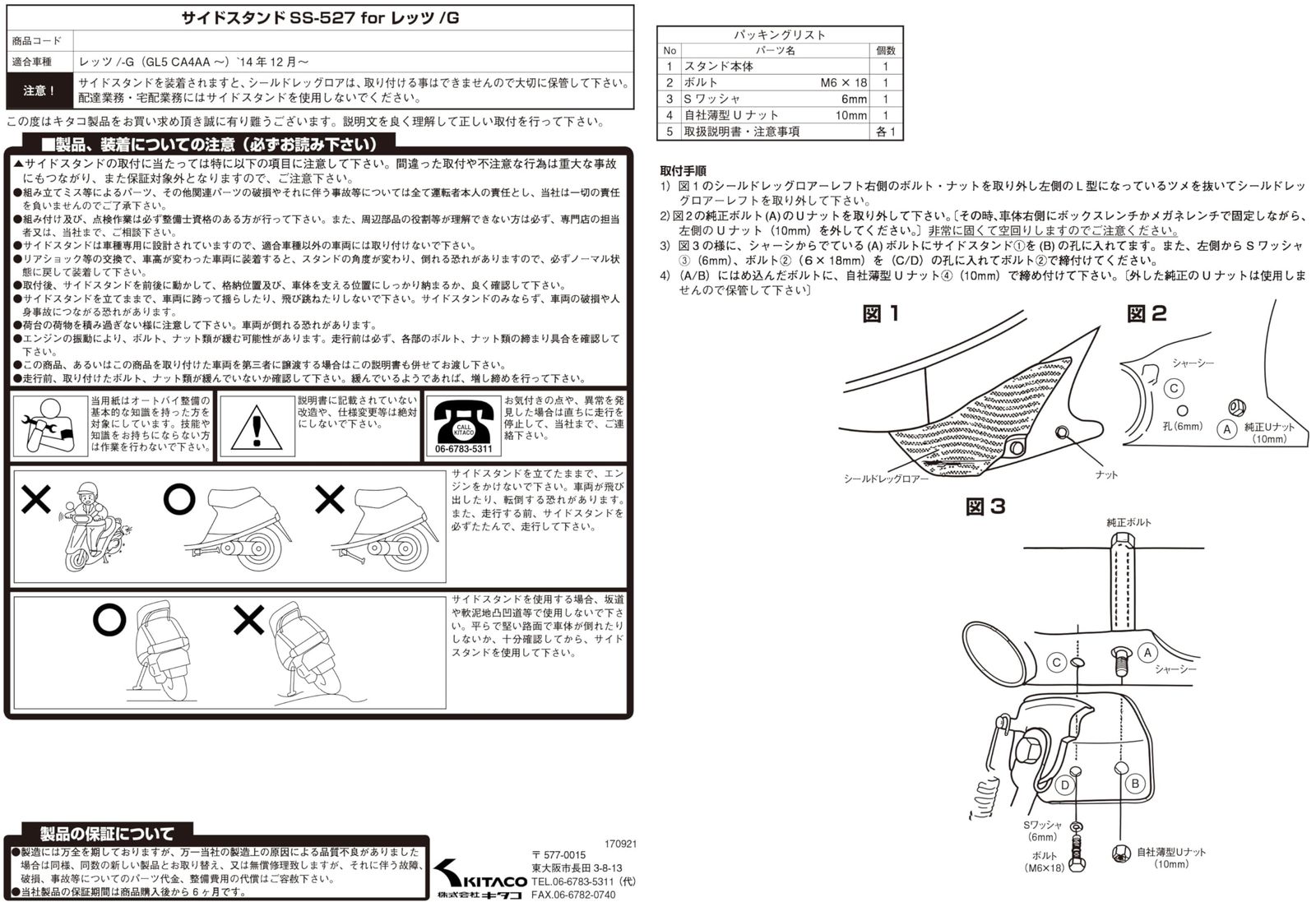 キタコ(KITACO) サイドスタンド SS-527 (メッキ) レッツ/レッツG(CA4AA) 656-2010527