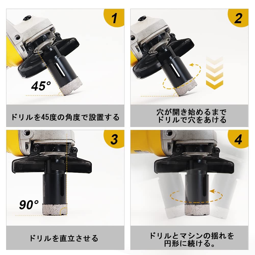 簡単に、高速に、穴あけができますディスクグラインダを使用して床タイルなどの硬質タイルでも