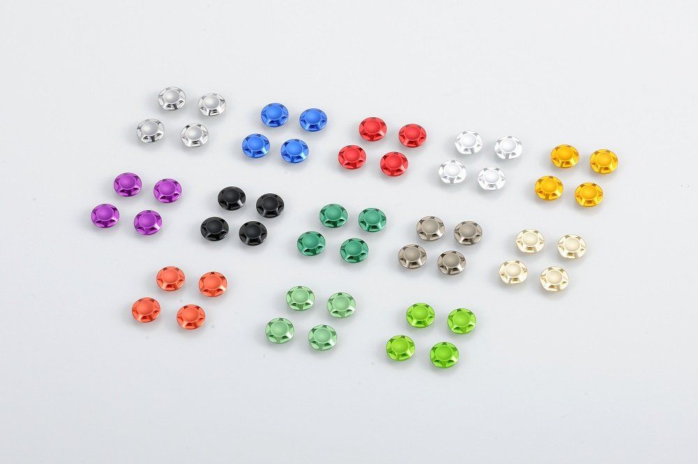 取り付けはボルトの頭に差し込むだけの簡単取り付け、ハンドル周りのドレスアップ等にご使用いただけます。