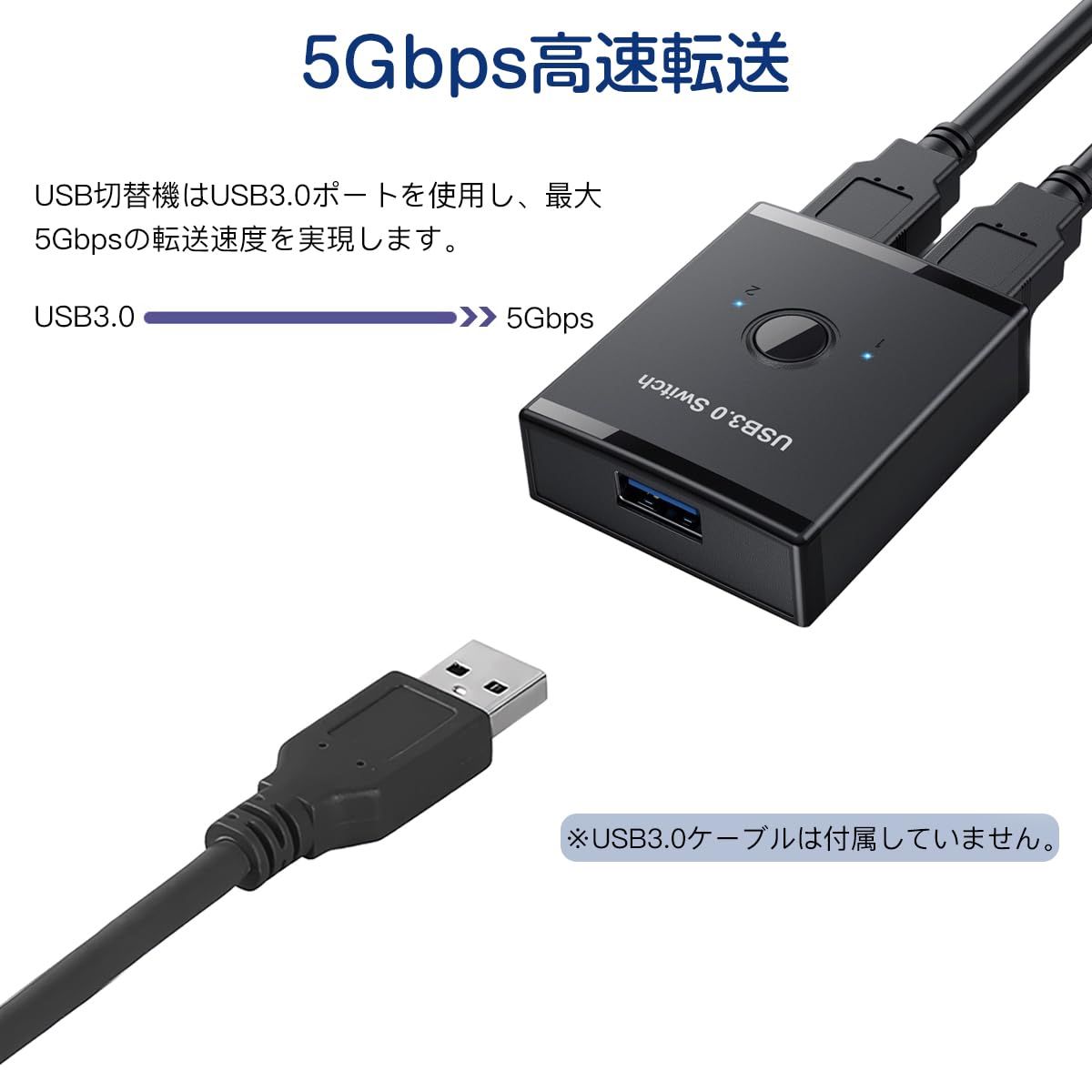 5Gbpsの高速転送:USB切替機はUSB3.0ポートを使用し、最大5Gbpsの転送速度を実現します。