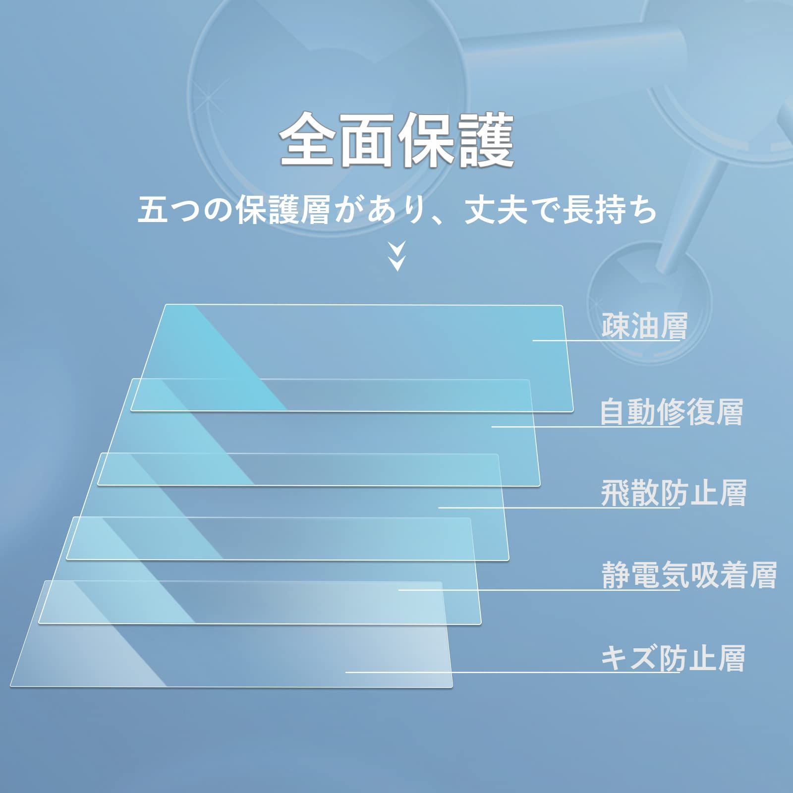【数多くのメリット】指紋軽減、飛散防止、汚れ防止、キズ防止、高感度タッチ、高透明度。愛車を全方面に保護します。透過率が高くて、 装着していることも忘れてしまうほどナビをしっかりと守ってくれます。ナビ視認性が素晴らしくて、スムーズな操作体験が実現できます。反射防止のため、画面がクリアで見やすくなります。