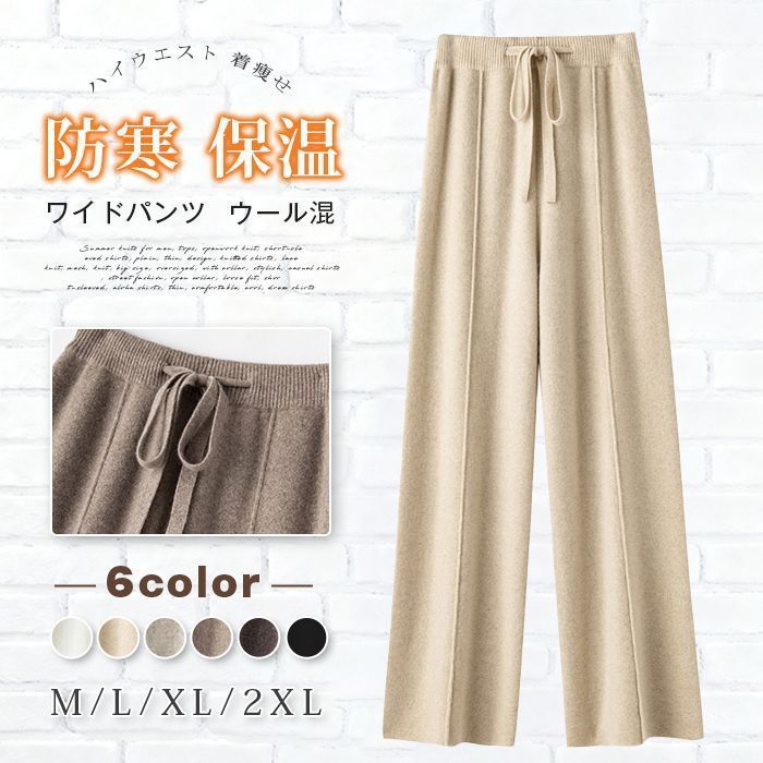 ワイドパンツ レディース ウール混 暖かい 防寒 保温 ニット パンツ ニットパンツ イージーパンツ ウエストゴム ゆったり 体型カバー ハイウエスト 着痩せ 無地 ボトムス カジュアル おしゃれ 可愛い シンプル 高見え きれいめ 通勤 通学 20代 30代 40代 50代 春 秋 冬