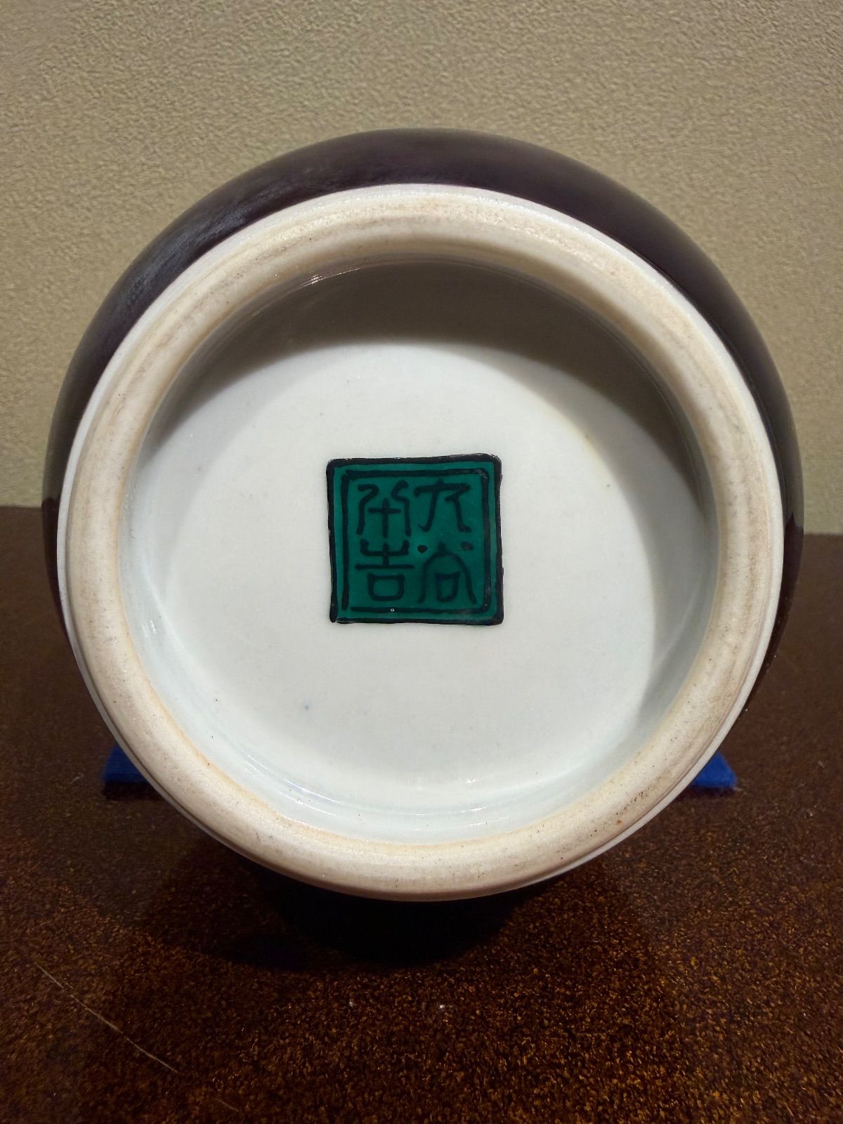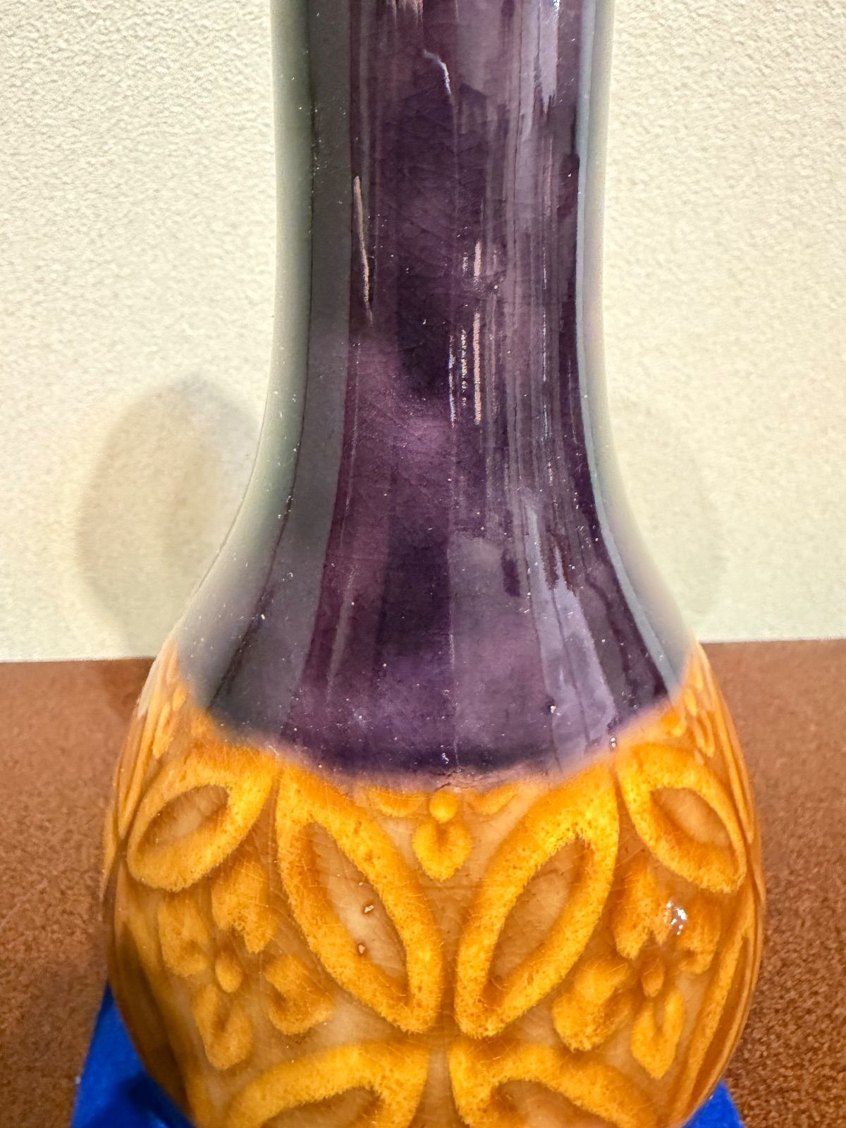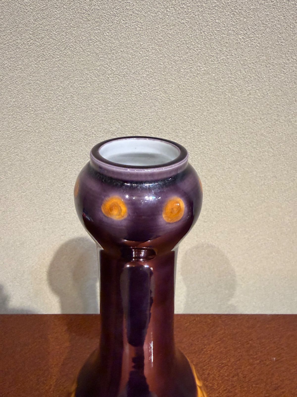 真作保証 九谷焼 徳田八十吉作 深厚耀変釉花生 花瓶 七宝繋 紫 共箱有 美術品 骨董