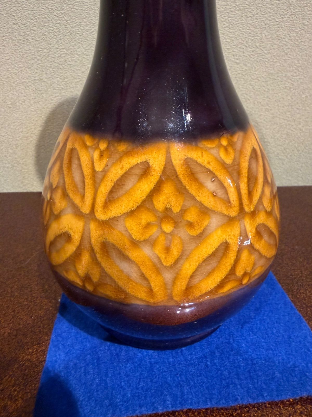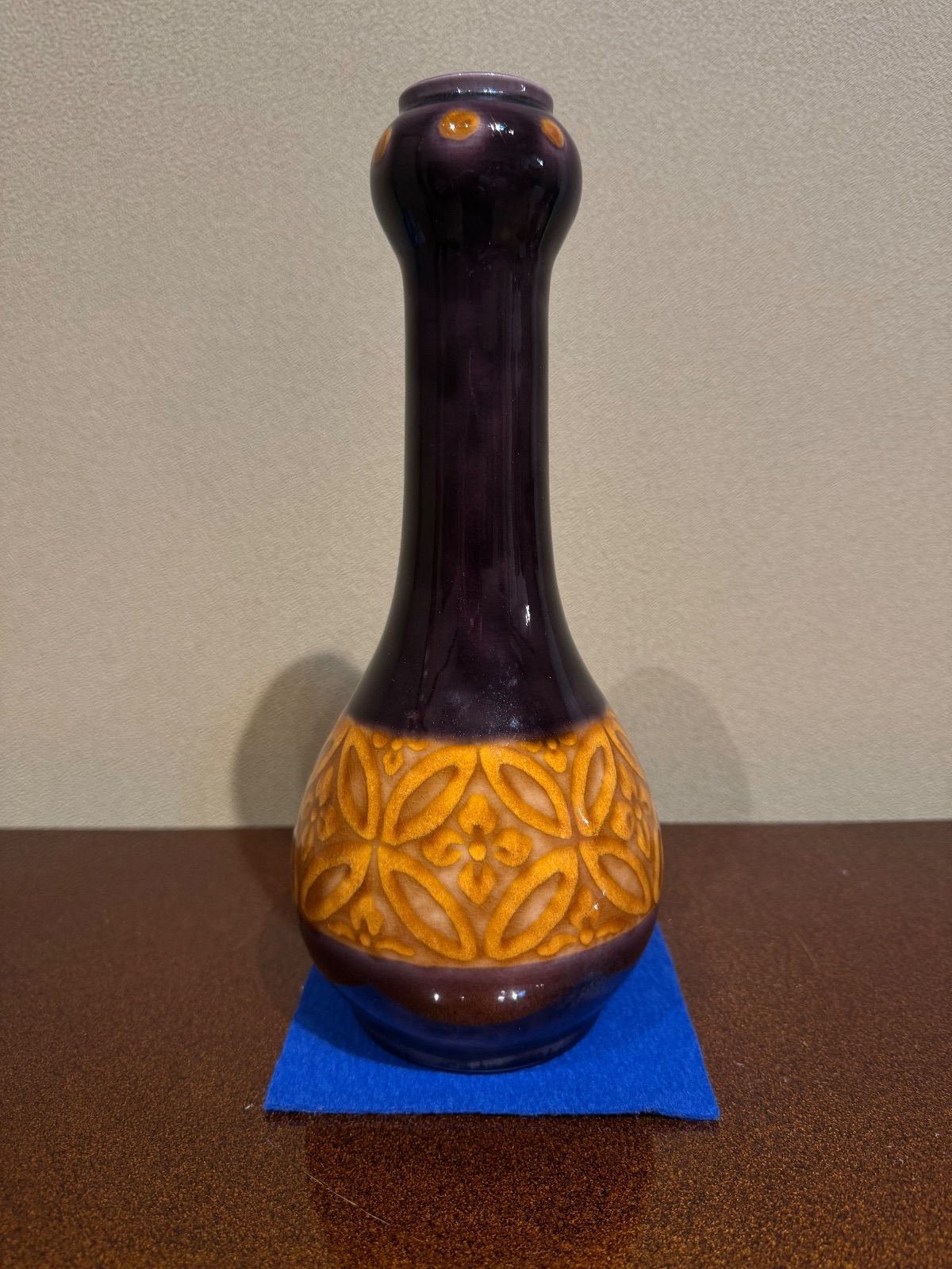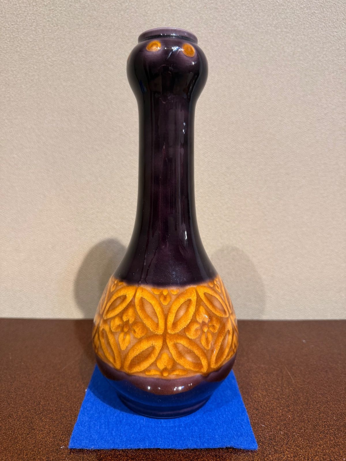 真作保証 九谷焼 徳田八十吉作 深厚耀変釉花生 花瓶 七宝繋 紫 共箱有 美術品 骨董