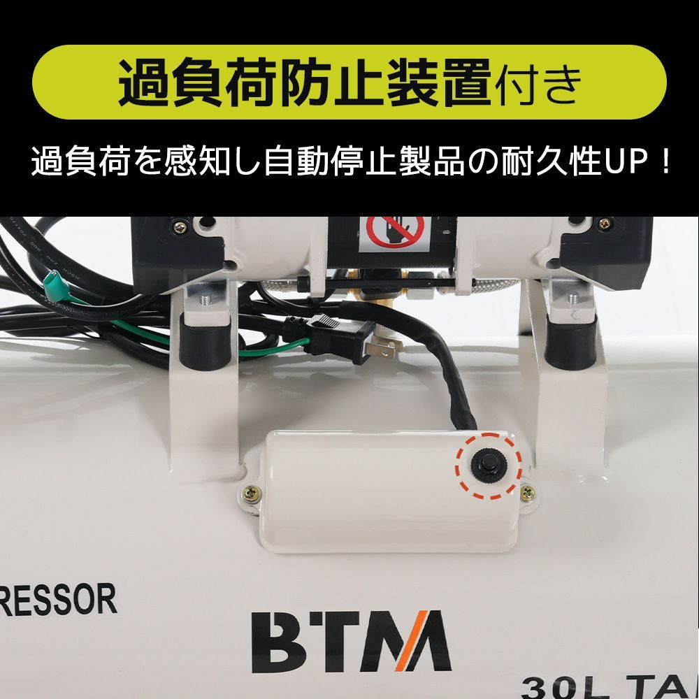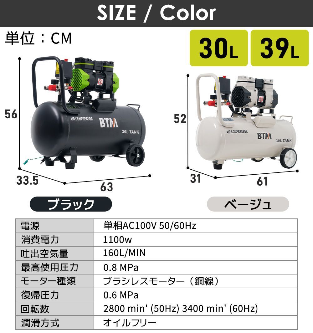【大満足のパワー】モーター出力1100w 最高使用圧力 0.8MPa 十分な動力を持ちながら電力消費が抑えられ、エアーステープラーやスプレーガンなどの日常使用に対応。