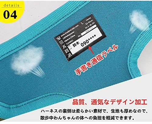 ハーネスの裏側は柔らかい素材で、生地も厚めなので、散歩中わんちゃんの体への負担を軽減できます。