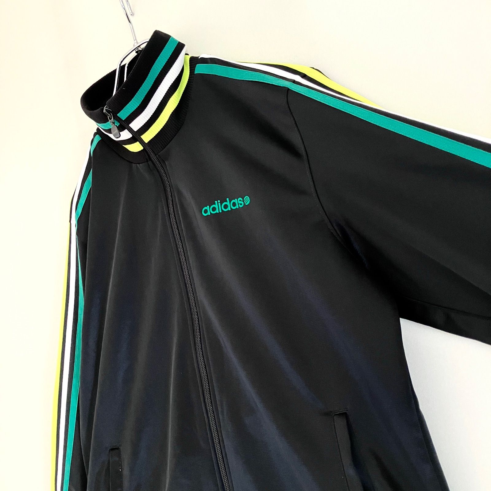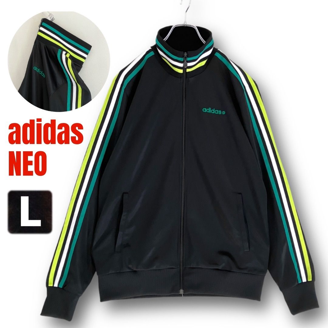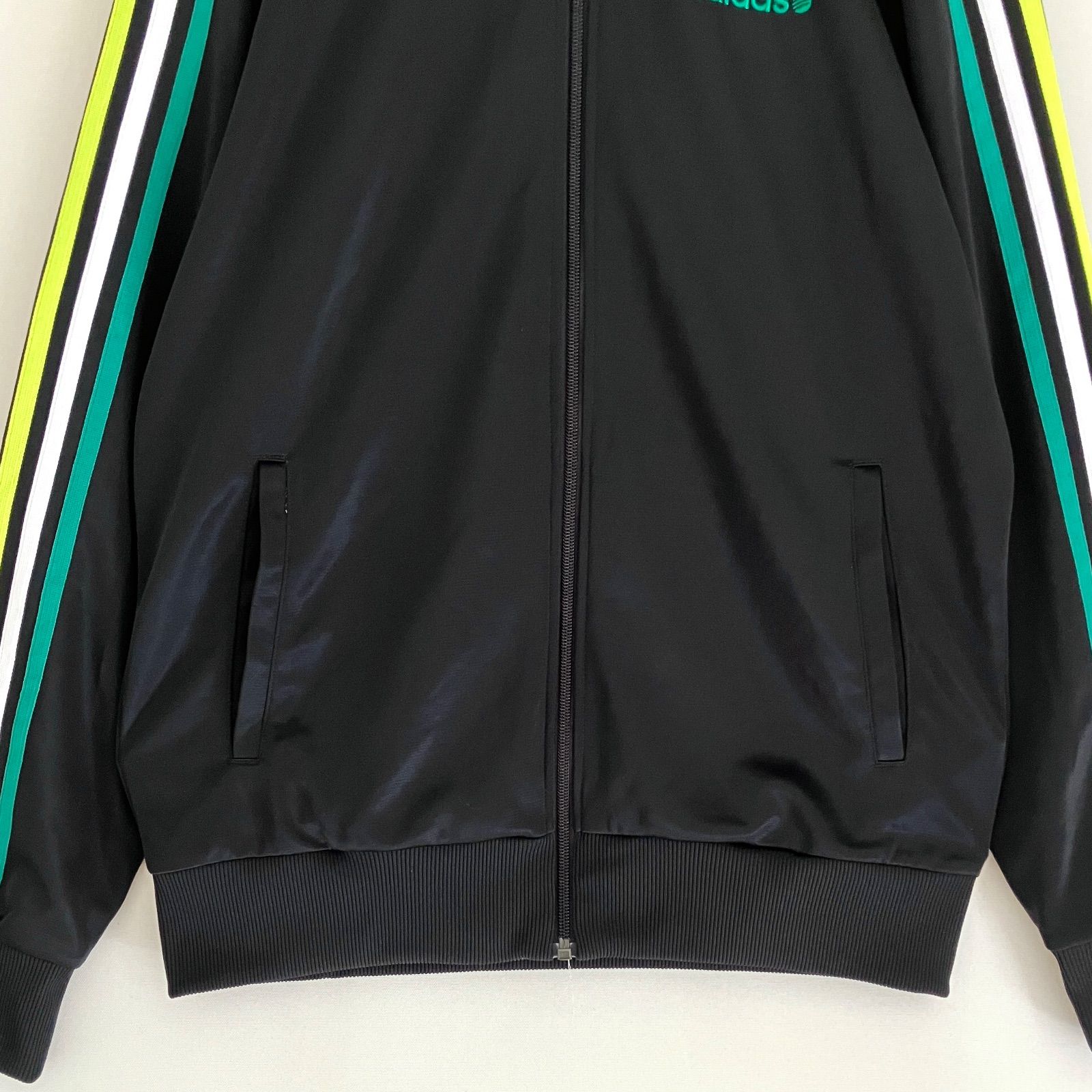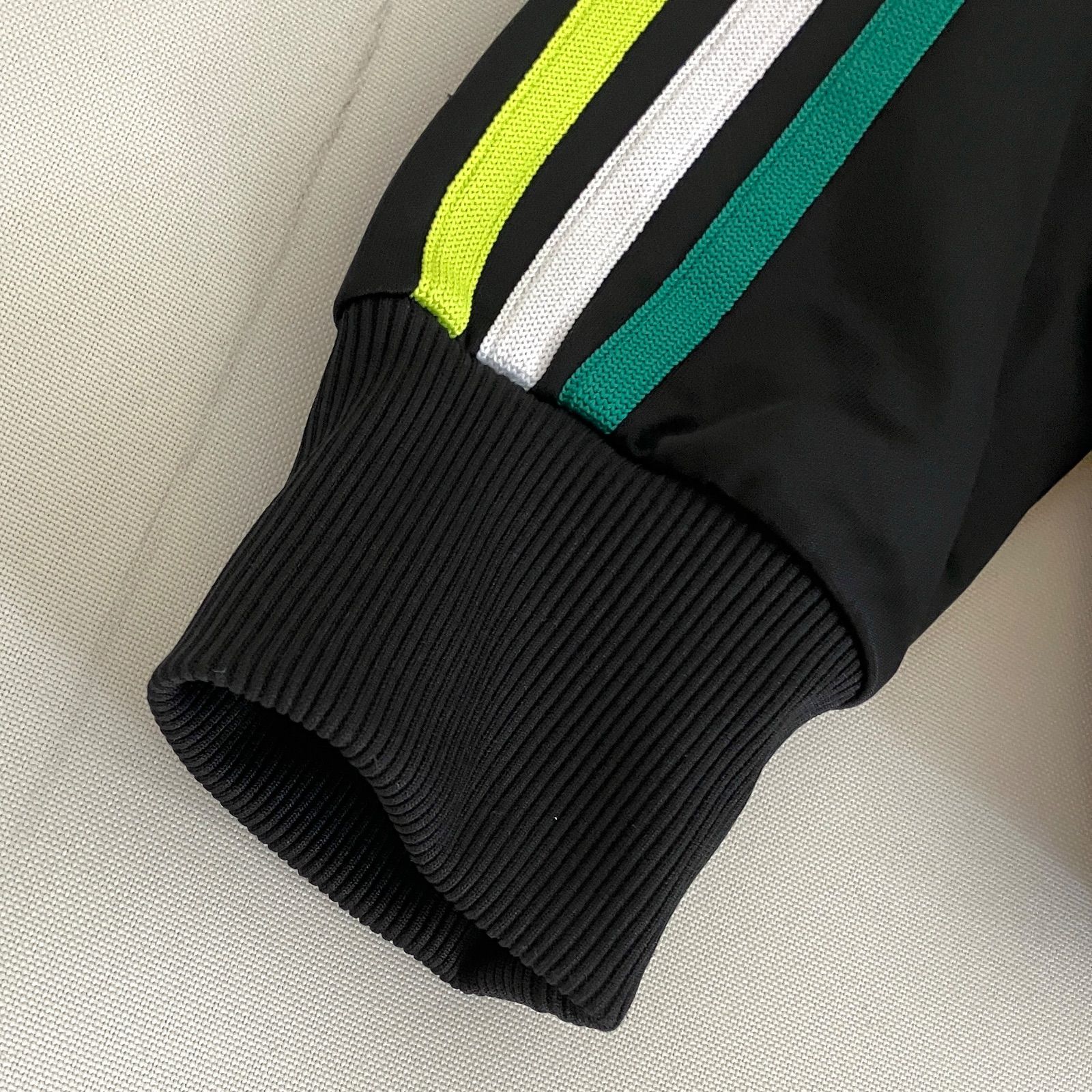 マルチカラーのリブラインとサイドのスリーストライプス