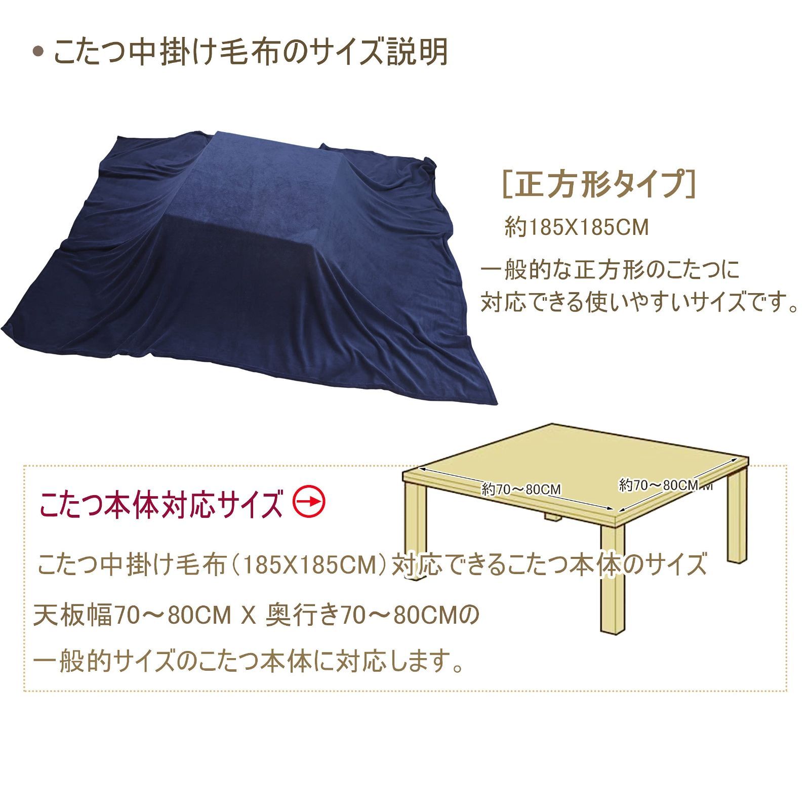 こたつ毛布 軽量 こたつ中掛け毛布 正方形 暖かい なめらか やわらか 毛布 こたつ ブランケット マイクロファイバー素材 こたつカバー こたつ上掛け ソファーカバー ベッドカバー マルチカバー ネイビー 185x185cm
