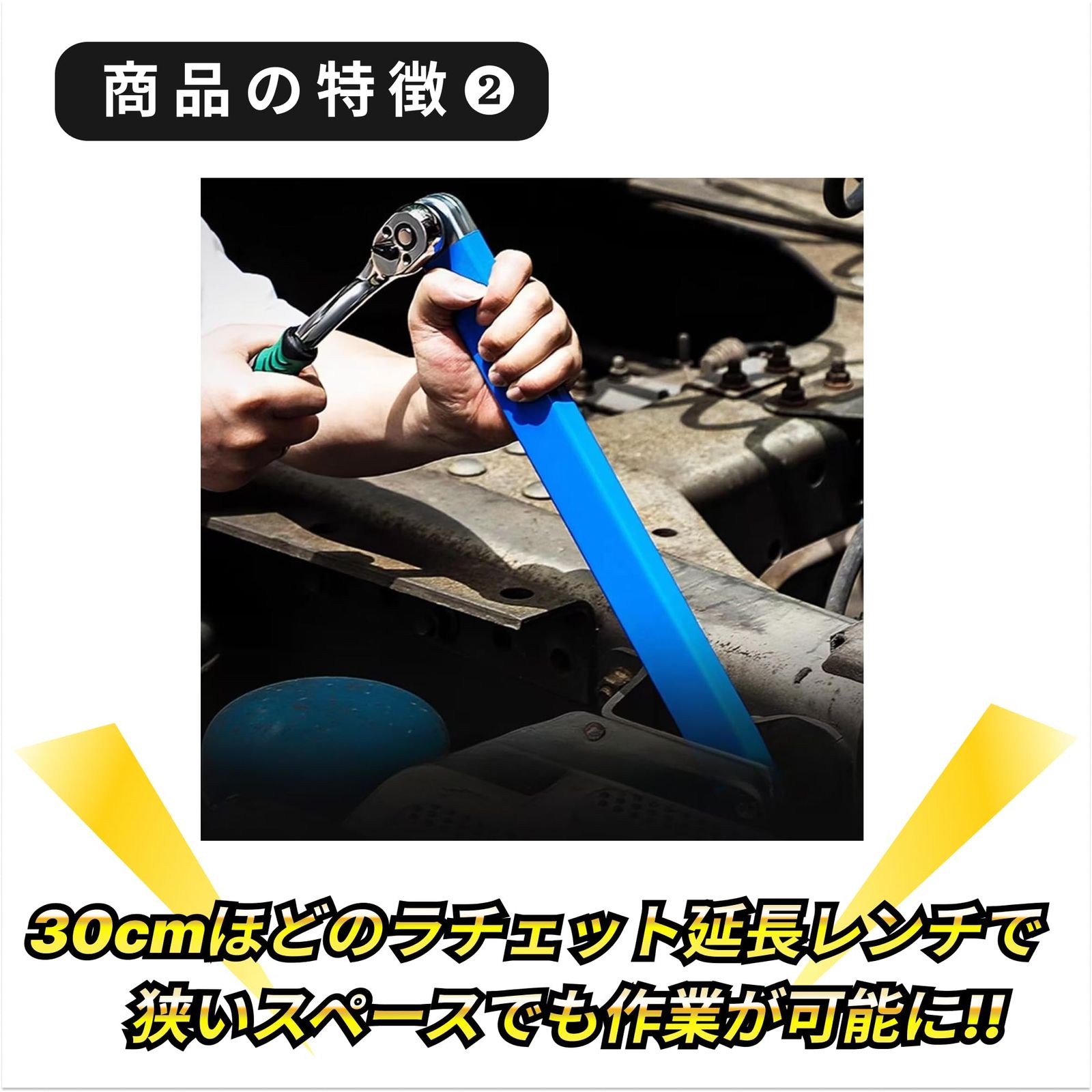 【商品説明】 限られたスペースでの作業を快適かつ効率的にサポートする ラチェットレンチ用延長ツールセット