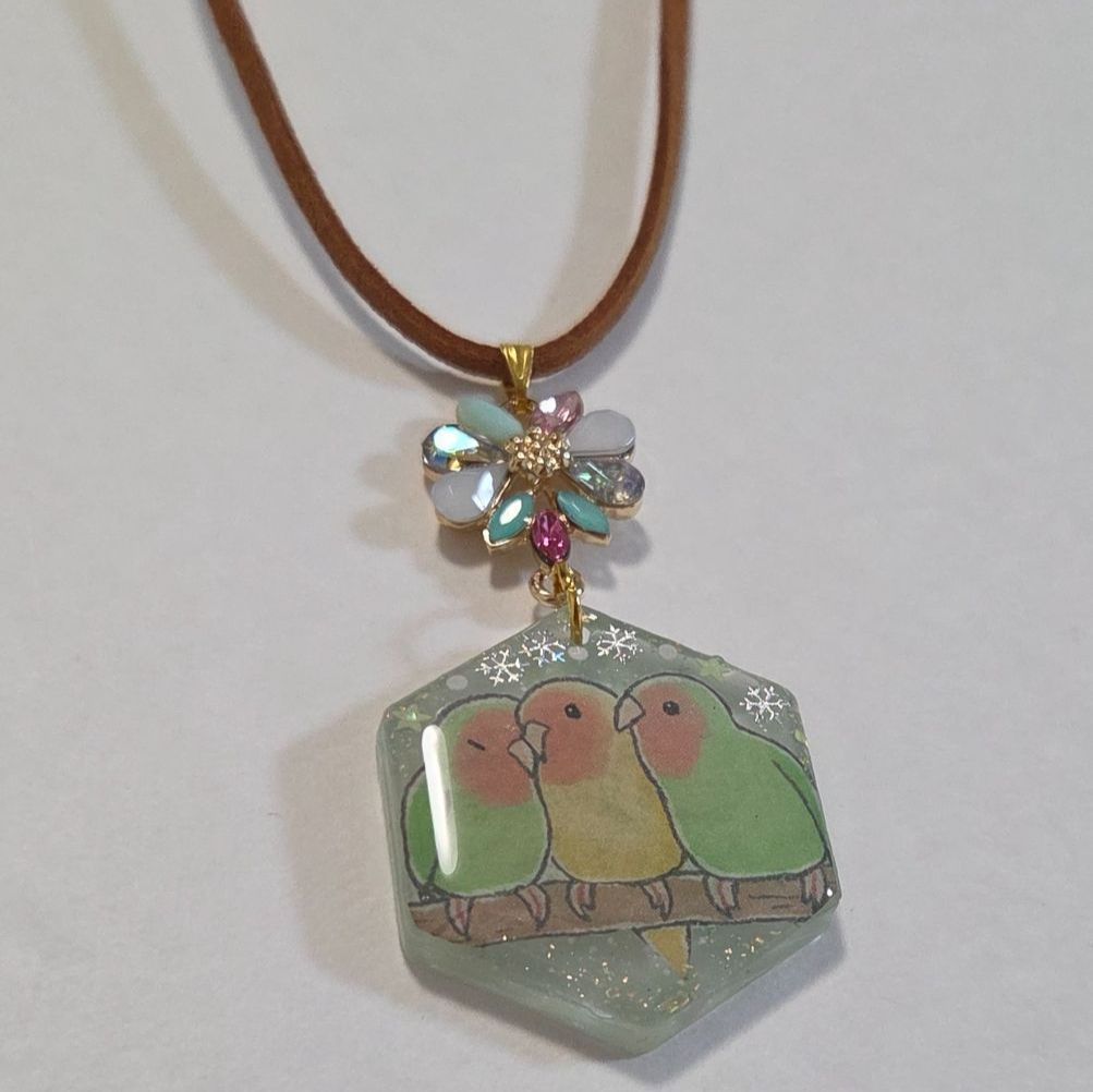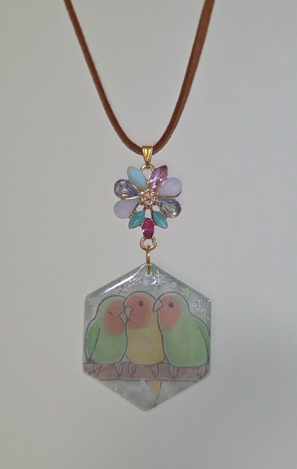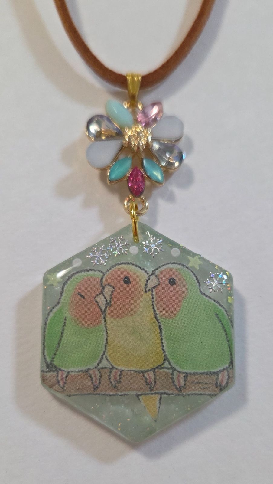 コザクラインコちゃんレジンネックレス☆豪華バージョン