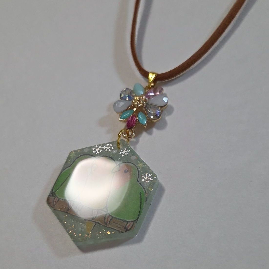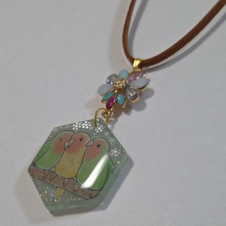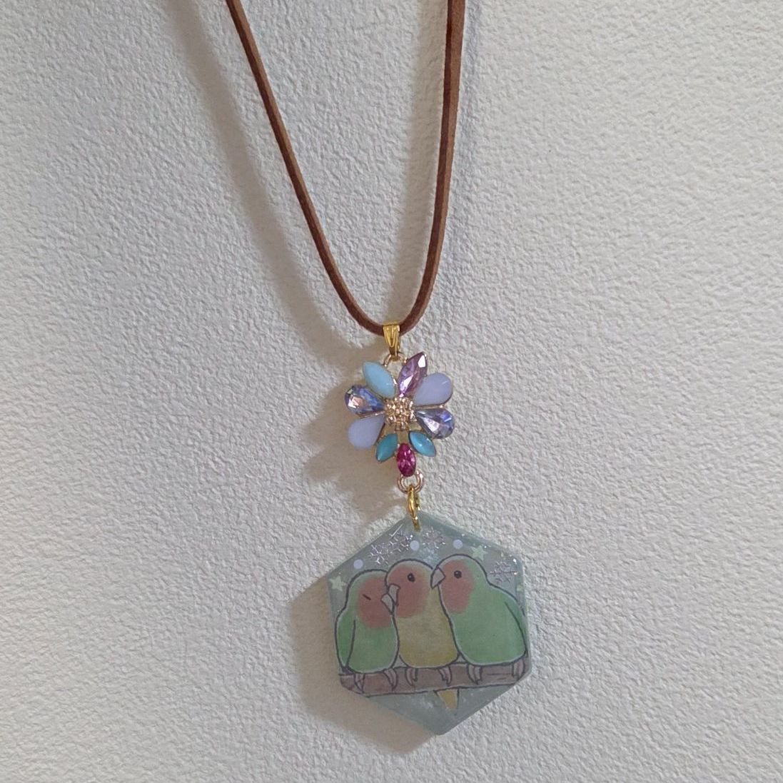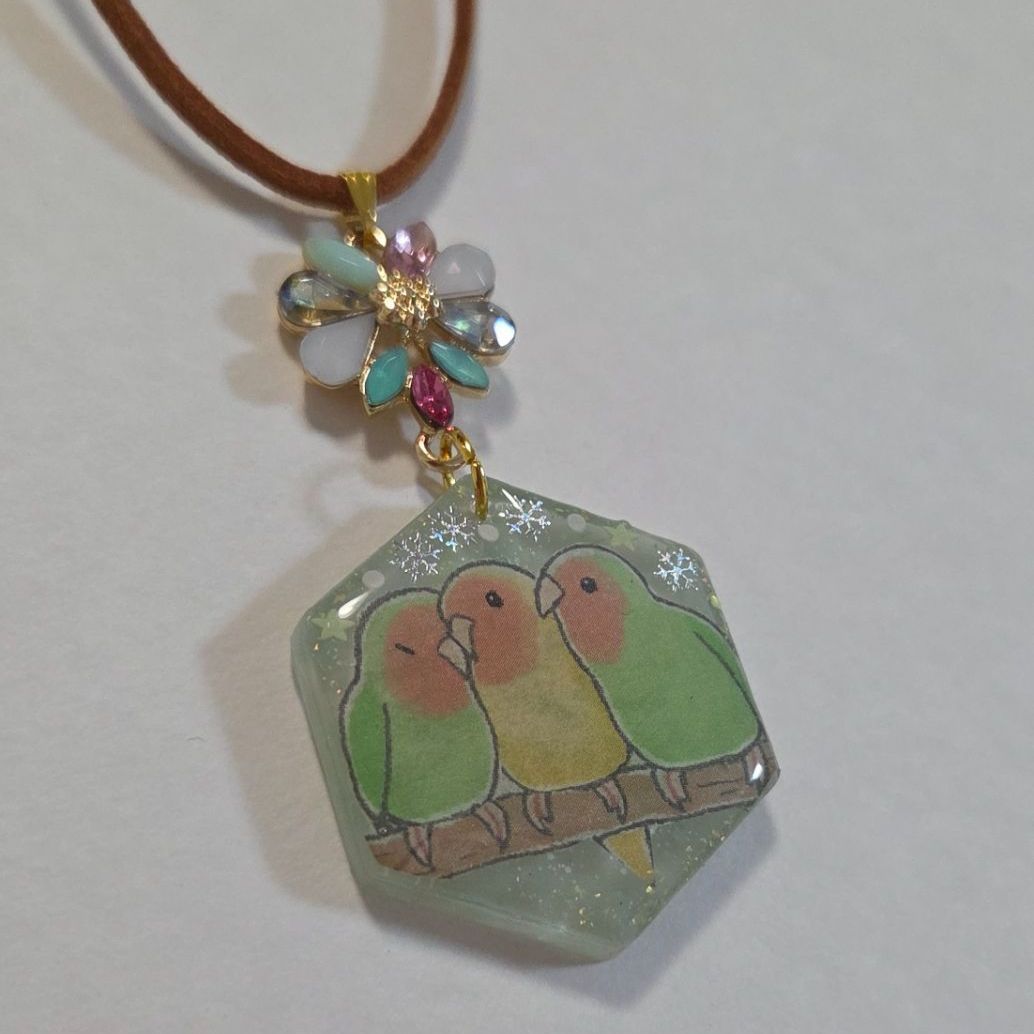 コザクラインコちゃんレジンネックレス☆豪華バージョン