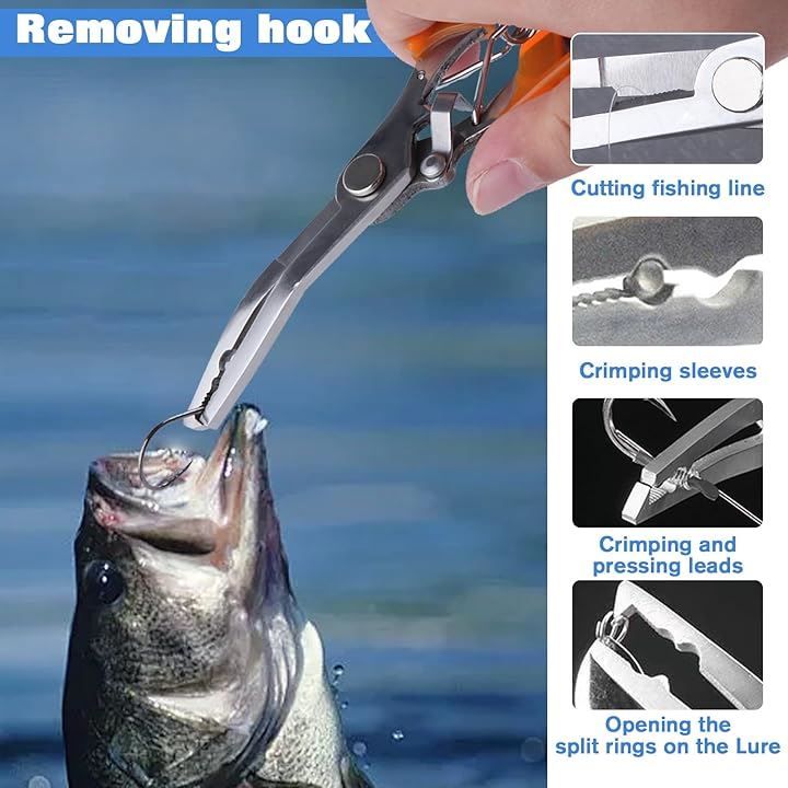 用途:釣り糸の切断、スリーブの圧着、リードの圧着とプレス、フックの取り外し、ルアーの頑固なスプリットリングの開封に最適。