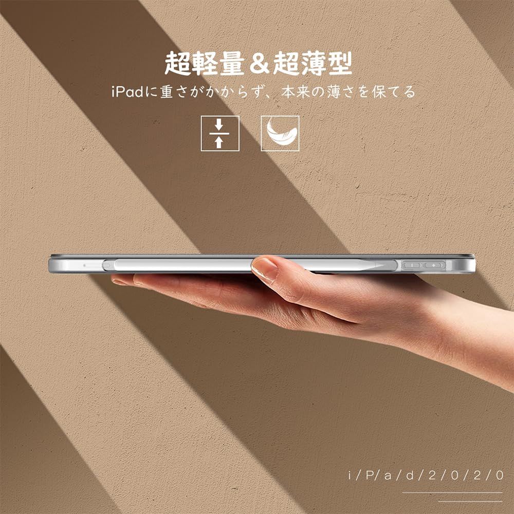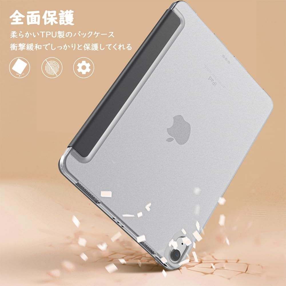 「対応機種」2022年発売のiPad Air 第5世代(モデル番号:A2591、A2589、A2588)及び2020年発売のiPad Air 第4世代(モデル番号:A2316、A2324、A2325、A2072)10.9インチタブレットにカスタム設計しており、iPad 第10世代 10.9インチ、又は他のモデルには適用しません。購入する前にタブレットの機種/モデル番号を確認してください。