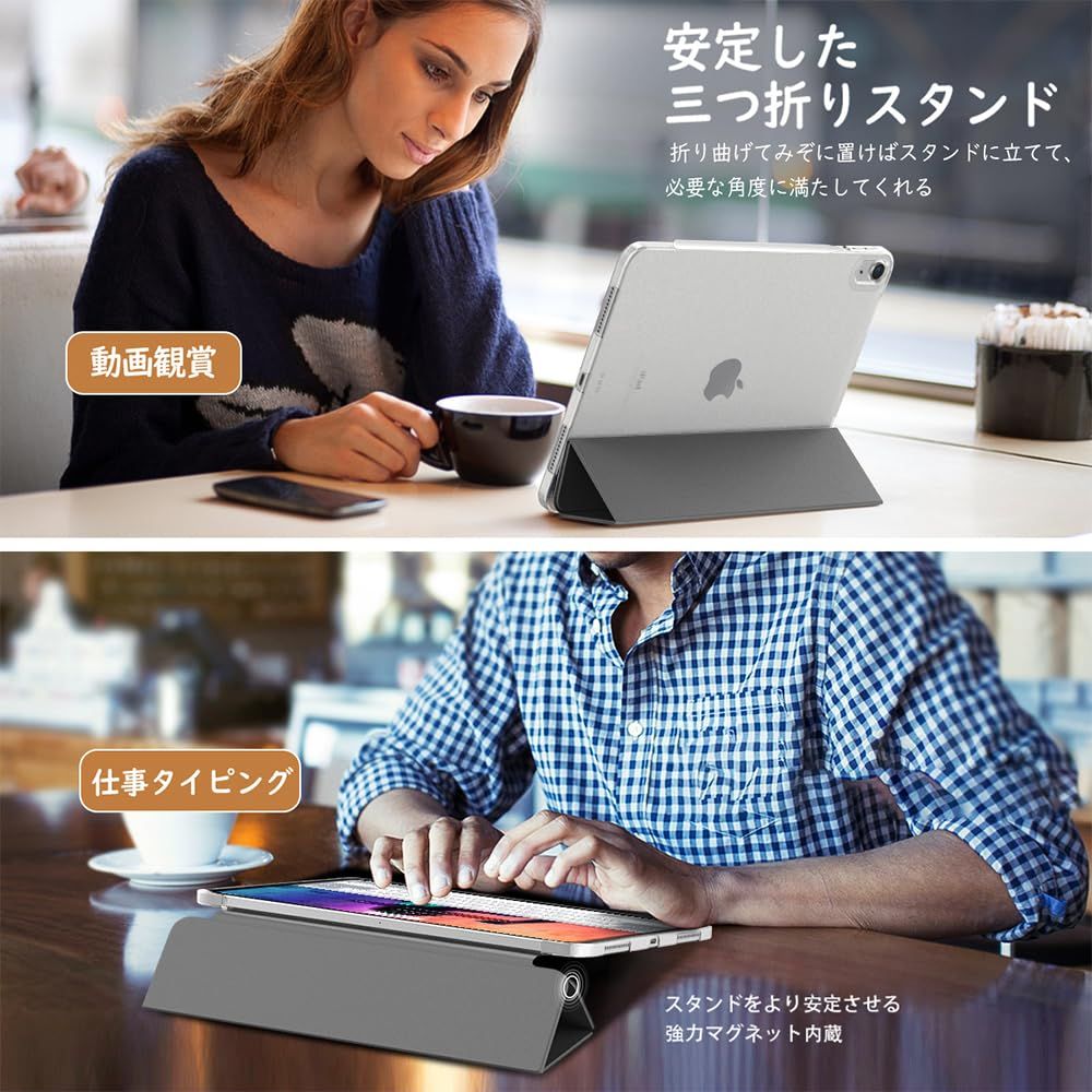iPad Air 第5世代 ケース iPad Air 第4世代 ケース iPad air 5/air4 ケース 10.9インチ TiMOVO iPad Air 第5世代/第4世代 2022/2020 カバー TPU オートスリープ機能 第二世代Pencilワイヤレス充電対応 全面保護 PUレーザー 三つ折り スタンド マグネット 耐衝撃 軽量 手帳型 無色透明バック Space Gray