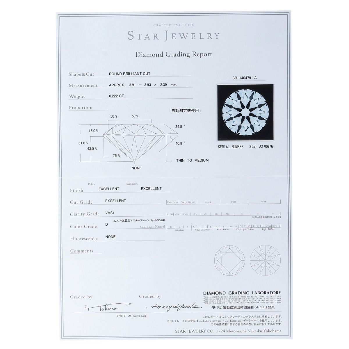【宝石】中石ダイヤモンド0.222ct D-VVS1-3EX ダイヤ直径3.9mm メレダイヤ0.15ct