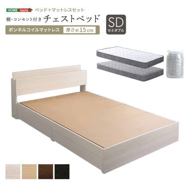 ベッドセミダブルマットレス付き引き出し付きボンネルコイル(約)幅130cm長さ214cm高さ70cmコンセント付きヘッドボードチェストベッド木製コンパクト梱包搬入しやすいホワイト白ナチュラルブラウンブラック黒おしゃれセミダブルベッド収納付きSDサイズベッドマットレス付ボンネルコイルベッドフレーム収納ベッドセミダブル引き出し付きシンプルコンセントセット寝具ベッドフレームマットレスセット収納付きベッド宮棚2口コンセント付きスマホ充電タブレット眼鏡時計小物置き場引き出し2杯衣類収納洋服収納シーツ収納ベッドカバースプリングマットレスマットレス厚み15cmコイル数336個沈み込みすぎない設置しやすいらくらく搬入搬入簡単マンションアパート二階シンプルモダン北欧風新生活一人暮らしワンルーム寝室ベッドルーム子供部屋寮家族ファミリー夫婦抗菌防臭通気性衛生的快眠寝返りしやすい負担軽減寝心地がいい圧縮ロール梱包高耐久ベッド下収納可能木目調フレーム:ホワイトオーク柄オーク柄ウォールナット柄ブラックオーク柄マットレス:ホワイトシルバー