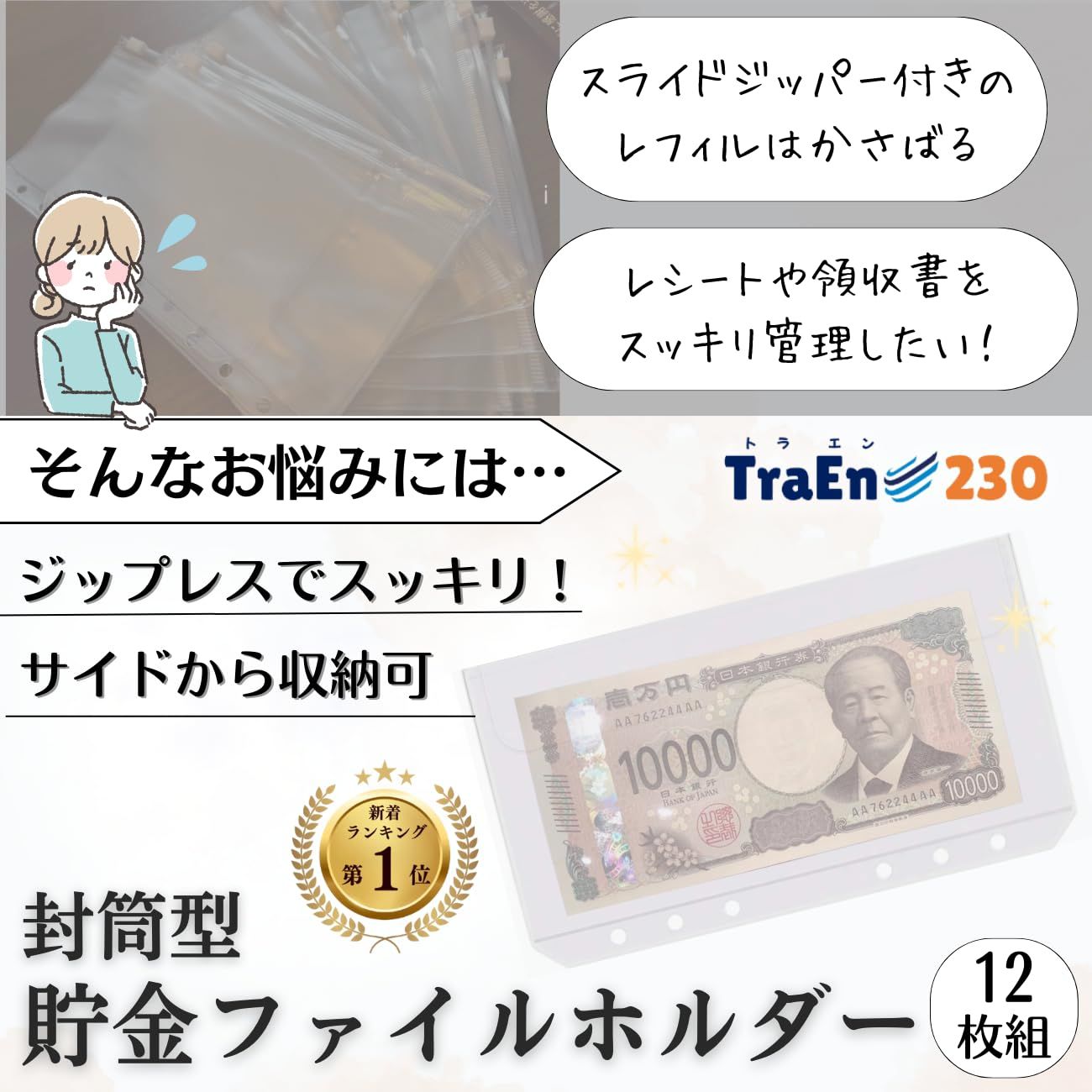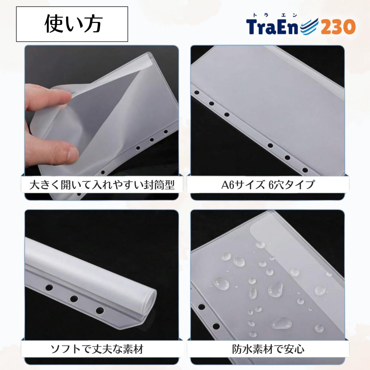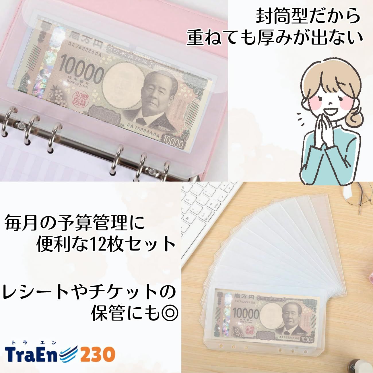 封筒貯金 A6 6穴 貯金ファイル 家計管理 バインダー 家計簿 袋分け お金管理 レシートホルダー お札ケース ジップレス 横型